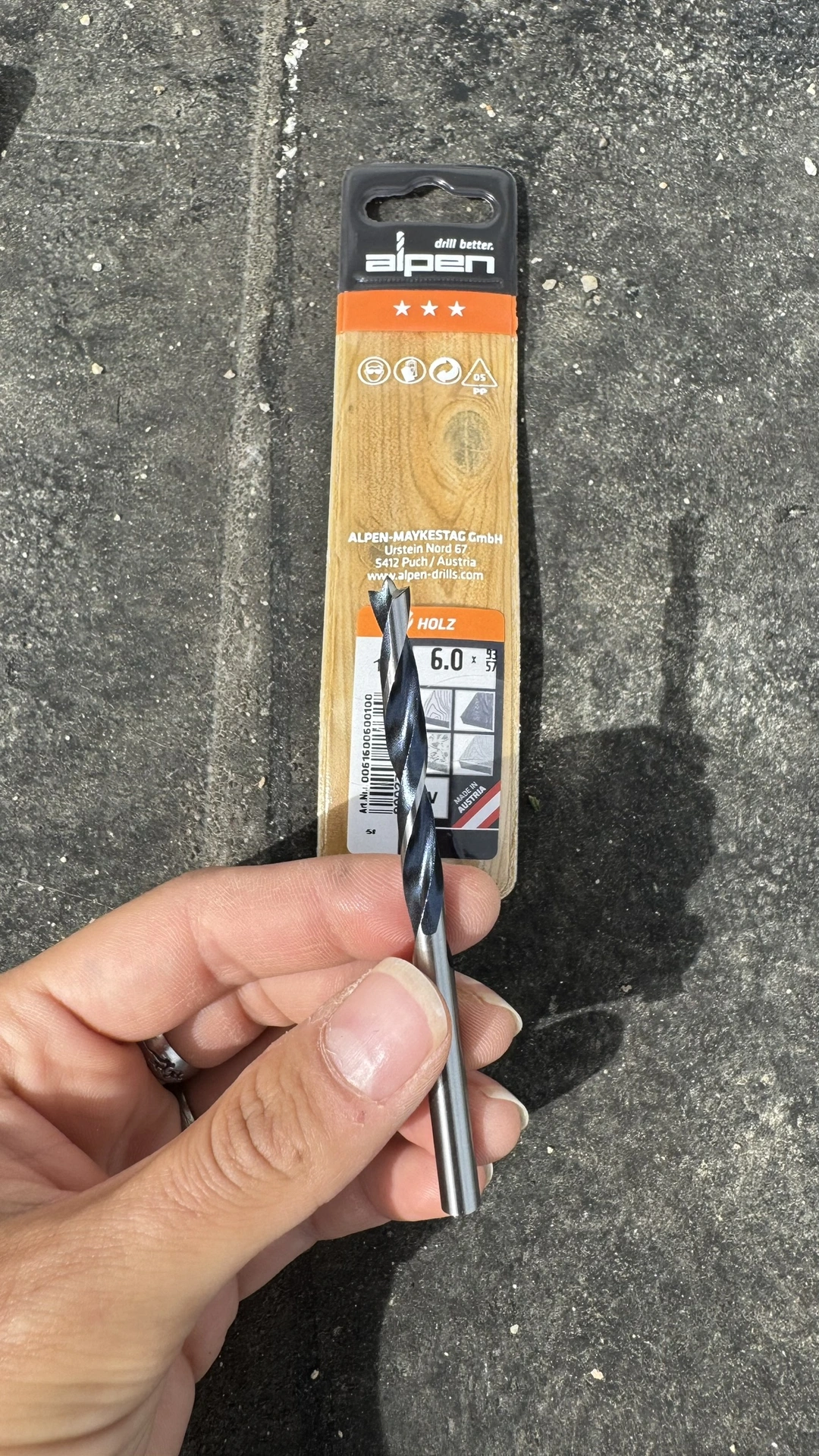 | Dřevo (Ø 6 mm) | Alpen CV 6 mm | Nejlepší kombinace rychlosti + čistoty řezu | Časté vrtání, laminované desky | 40 Kč | Makita D-07054 (vyvážený univerzál, 19 Kč) |