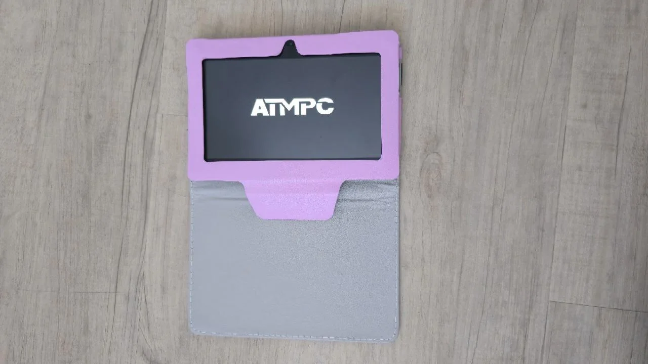 Tablet ATMPC dorazil vcelku rychle a, co mě mile překvapilo, v naprosto nepoškozené krabičce. Uvnitř vše pečlivě uložené – samotný tablet, jednoduché ochranné pouzdro s obyčejným růžovým designem, nabíječka a dokumentace. Žádný chaos, ve fólii, ale regulérní produkt.