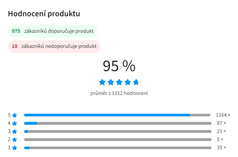 - Uživatelské hodnocení Heureka 95 % (1 300+ recenzí)