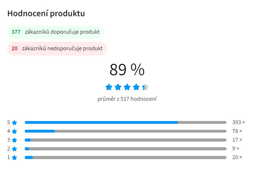 - Uživatelské hodnocení Heureka 89 % (500+ recenzí)