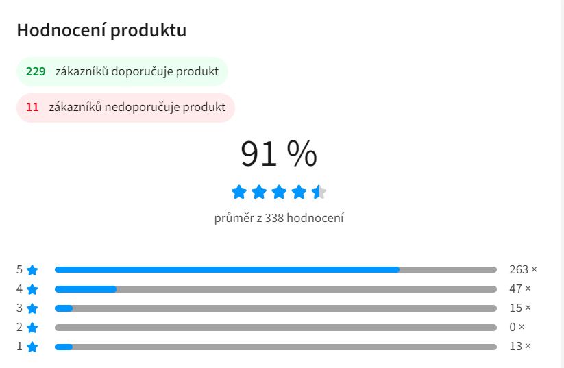 - Uživatelské hodnocení Heureka 91 % (300+ recenzí)