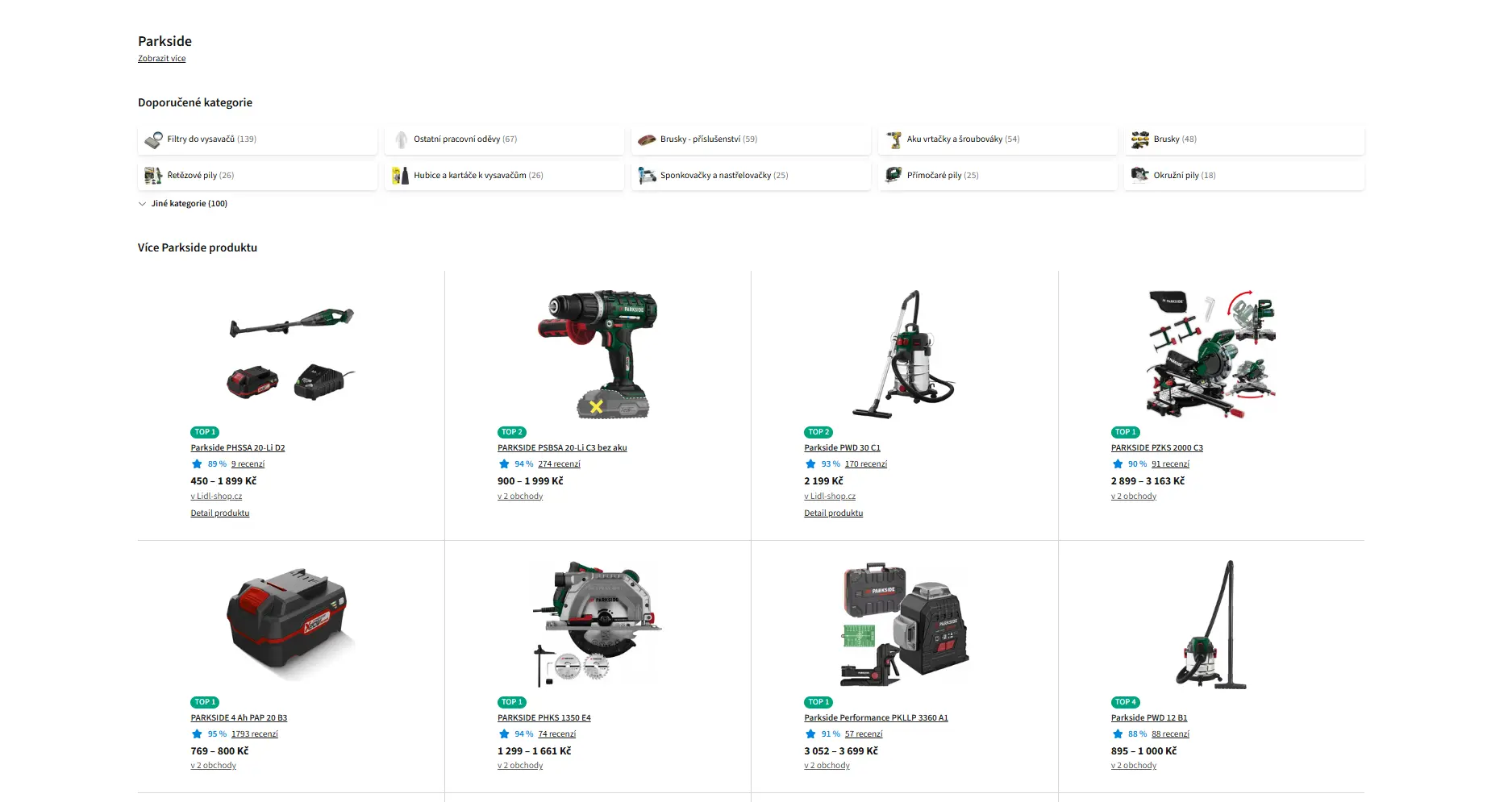 - Průzkum nejprodávanějších produktů Parkside na e-shopu Lidlu a Heurece