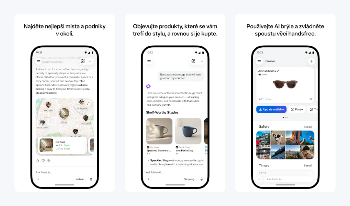 Foto: Oficiální materiály vývojářeMeta AI je osobní asistent využívající umělou inteligenci, který pomáhá s odpověďmi, doporučeními i každodenními úkoly. Vychází z obsahu a trendů ze sociálních sítí jako Facebook, Instagram či Threads. Umožňuje chytřejší nakupování pomocí popisu nebo fotografie věcí, nabízí tipy na podniky a aktivity na základě recenzí a příspěvků a dokáže analyzovat či shrnovat obsah z obrázků, videí nebo dokumentů.