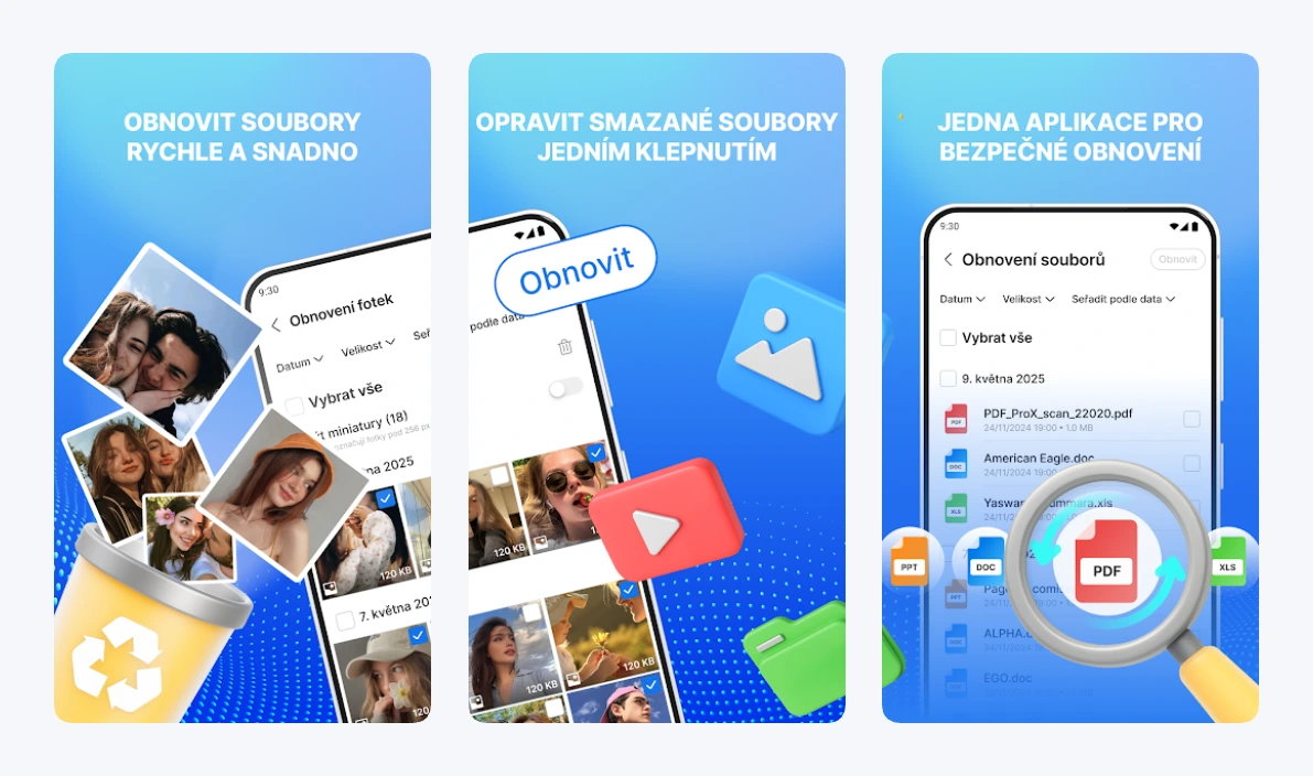 Foto: Oficiální materiály vývojářeAplikace slouží k obnově smazaných souborů z mobilního zařízení, zejména fotografií, videí a dalších typů dat. Umožňuje prohledat interní úložiště telefonu a identifikovat soubory, které byly odstraněny, a pokusit se je obnovit. Součástí funkcí bývá rychlé i hluboké skenování, náhled nalezených souborů před obnovením a jednoduché uživatelské rozhraní pro správu obnovených dat. Aplikace je určena pro uživatele, kteří chtějí získat zpět ztracené soubory bez nutnosti pokročilých technických znalostí.