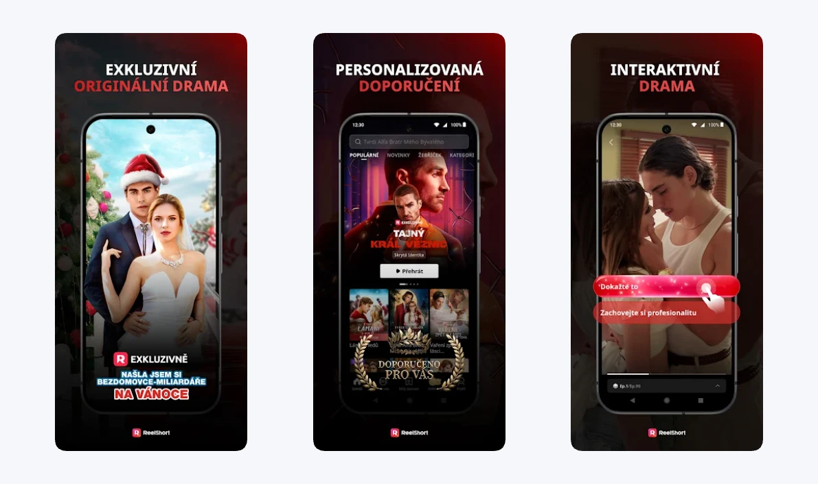 Foto: Oficiální materiály vývojářeReelShort je streamovací platforma zaměřená na krátké seriály ve vertikálním formátu, které jsou vytvořené pro sledování na mobilu. Nabízí širokou knihovnu minisérií v HD kvalitě, přičemž jednotlivé epizody trvají jen několik minut a nové díly přibývají každý den. Obsah pokrývá různé žánry od romantiky až po drama a zahrnuje i interaktivní prvky, díky nimž může uživatel ovlivnit vývoj děje. Aplikace staví na rychlé a poutavé zábavě a přináší filmový zážitek přizpůsobený krátkým chvílím i mobilní obrazovce, včetně možnosti předplatného pro přístup ke kompletní nabídce obsahu.