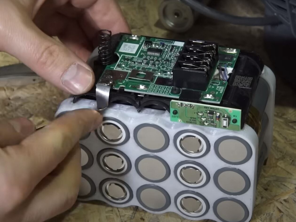 Šasi baterie a rámeček na bateriové články youtubet vytiskl na 3D tiskárně podle vlastních návrhů. Vyrobené šasi a zasouvací modul spojil vteřinovým lepidlem a malými šroubky. Místo Li-ion článků typu 18650, které najdeme v originálních akumulátorech, použil větší články 21700 od výrobce LG. Celkově se jednalo o 15 kusů. Jednotlivé články k sobě připojil niklovými pásky pomocí bodového svařování.