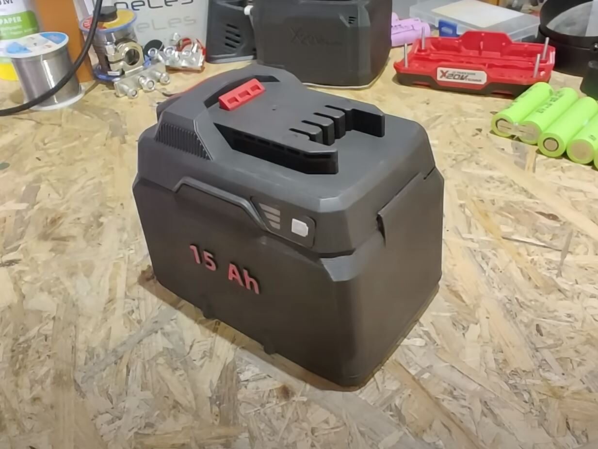 Videonávod od youtubera Solipsfilm ukazuje, jak si v domácím prostředí vyrobit obří akumulátor 15Ah kompatibilní s aku nářadím Parkside 20V. Vlastní baterie jej stála prakticky stejné peníze jako nová originální baterie s téměř poloviční kapacitou (Parkside Performance Smart 8Ah PAPS 208 A1 stojí okolo 1900 Kč). A to přitom na její výrobu potřeboval rozebrat jednu originální baterii Parkside, ze které použil zasouvací modul s uvolňovacím tlačítkem a BMS panel.
