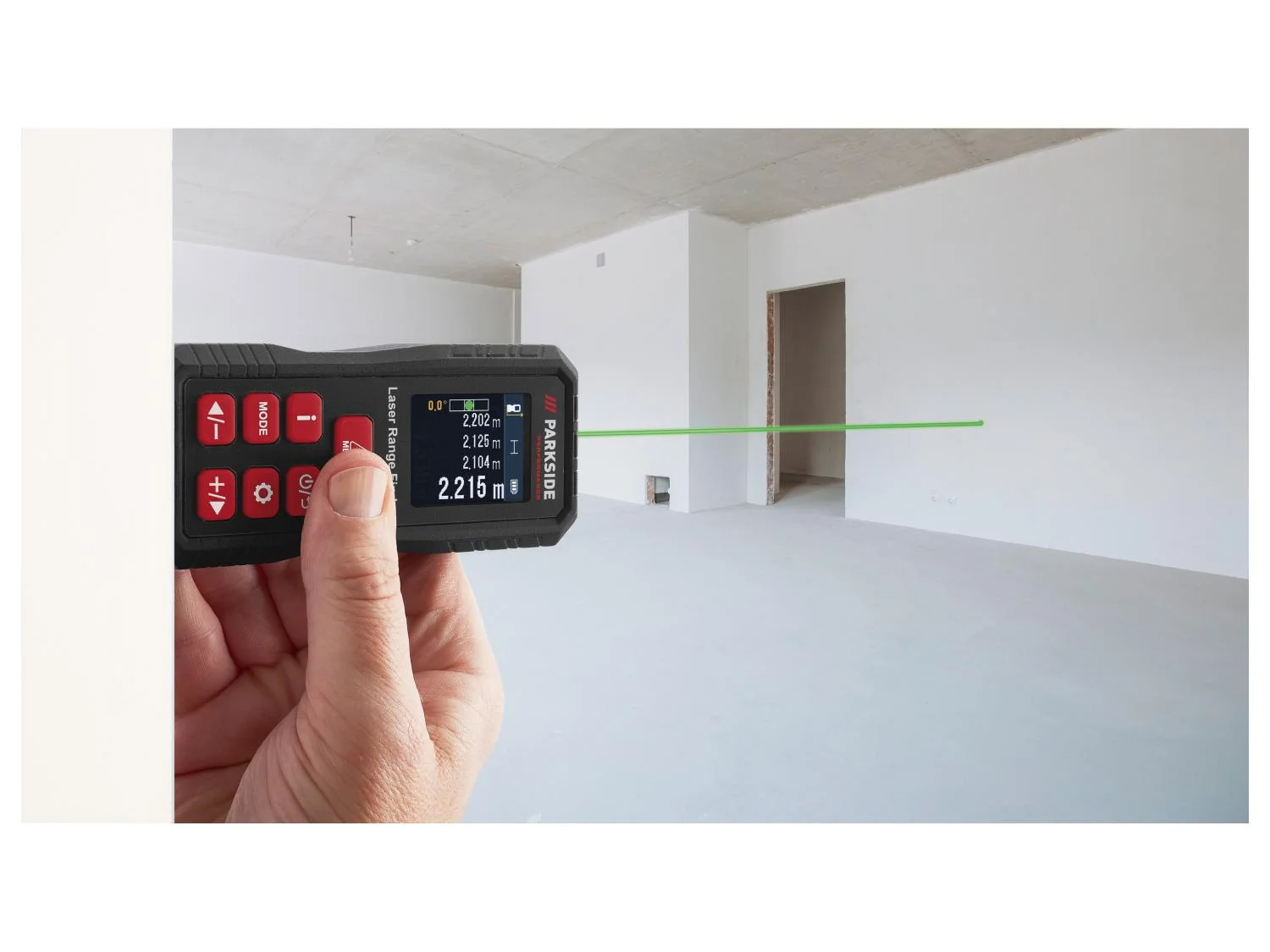 Laserový měřič vzdálenosti Parkside Performance PLEMP 75 A1 je určený pro přesné měření vzdáleností, ploch i objemů. Nabízí měřicí rozsah přibližně 0,0 – 75 m s přesností ±1,5 mm (nebo ±0,3 stupně při měření sklonu). Zelený laserový paprsek zajišťuje lepší viditelnost i za denního světla. Zařízení má podsvícený LCD displej s ukazatelem stavu baterie a nabízí tyto funkce: