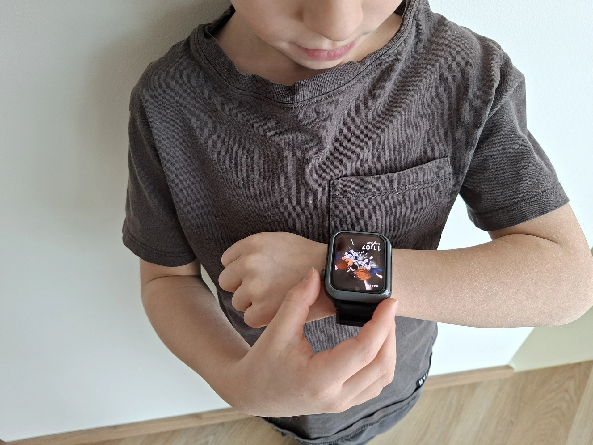 Po vybalení hodinek mne jako první napadlo, že displej je na synovu ruku příliš velký. Zároveň jsem ale byla překvapená nízkou hmotností hodinek. Sedmiletý syn se jako prvňáček pohybuje spíš na spodní věkové hranici pro užívání chytrých hodinek, ve chvíli, kdy jsem mu hodinky nasadila, mne ale obavy z velikosti displeje přešly. Na ruce seděly hodinky krásně.