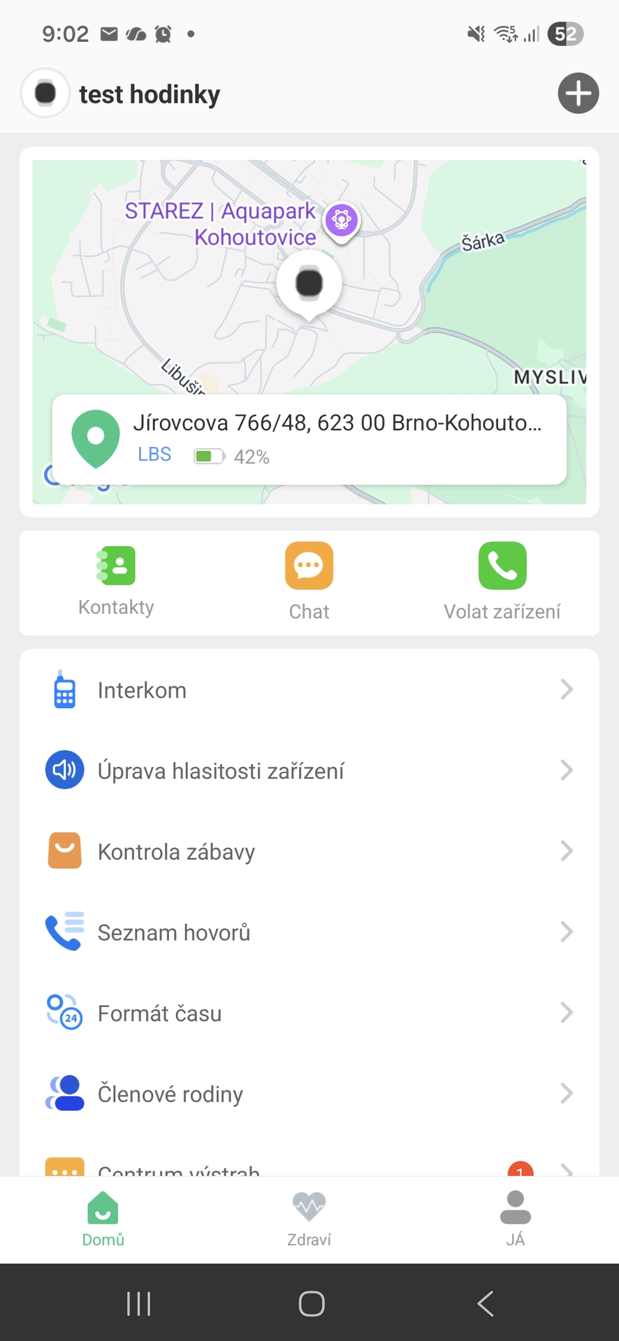 Po studiu návodu následovalo nahrání aplikace do mého telefonu, vložení SIM karty do hodinek a následné spárování. Právě prostřednictvím aplikace rodič nastavuje veškeré kontakty, mění režim hodinek, zapíná povolené okruhy pohybu nebo třeba zapíná budík. Chvíli jsme bojovali se správnou GPS lokalizací hodinek, stačilo ale vyjít z domu na otevřené prostranství a poloha se nastavila.
