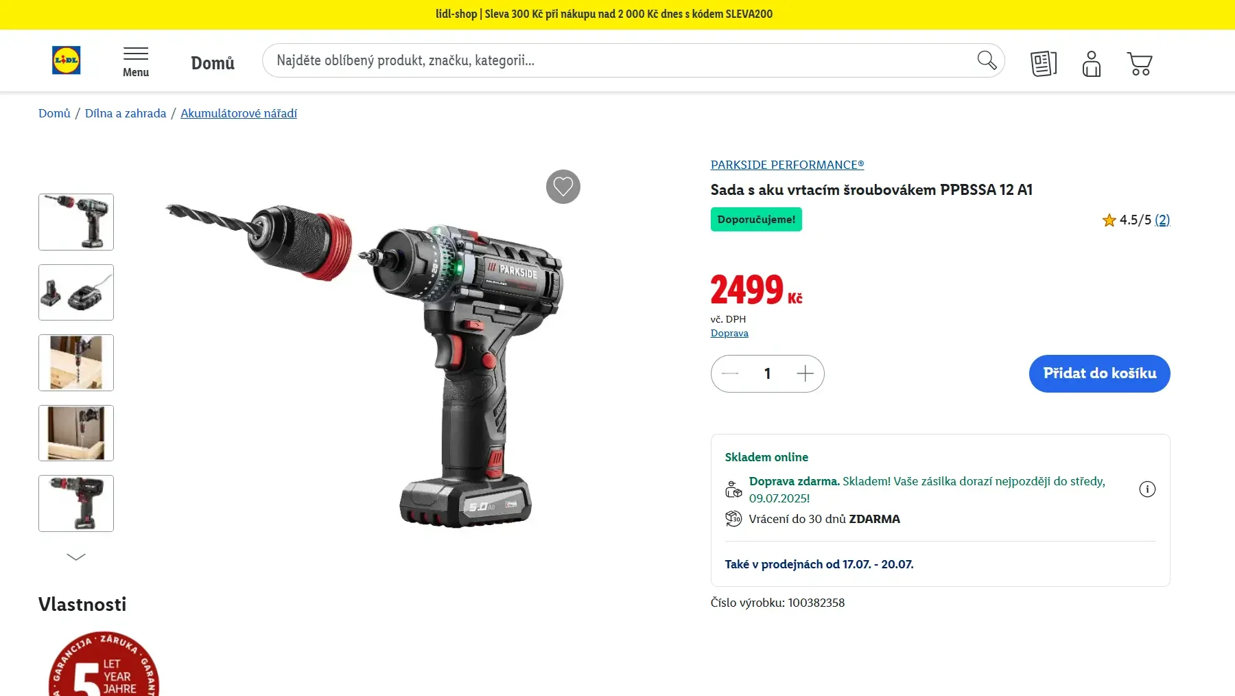 Aku vrtačka Parkside Performance PPBSSA 12 BF24 A1 je už dostupná na e-shopu Lidlu za cenu 2 499 Kč včetně akumulátoru 12 V (5 Ah) a nabíječky. K dispozici bude také v prodejnách od 17. do 20. července. V prodeji byla krátce loni v listopadu, než byla bez udání důvodu stažena. Koncem loňského roku jsme ji měli přislíbenou na testování, a proto doufáme, že se nic nezměnilo, a těšíme se na reálné zkušenosti z praxe.