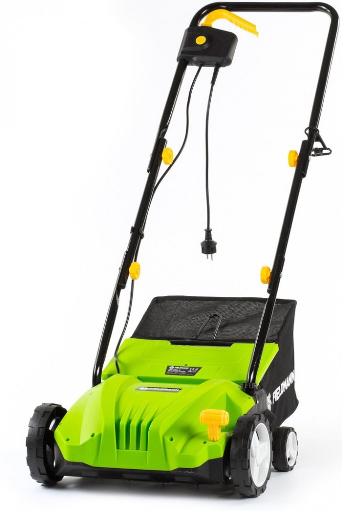 Hloubka je nastavitelná centrálně ve 4 polohách + 1 poloha slouží pro přepravu. Vertikutátor je dodáván včetně záchytného 50litrového pytle s okénkem stavu naplnění. Jeho skladnost zajišťuje funkce sklopení a samostatný držák na stěnu. Transport usnadňují 4 kolečka s zadním stabilizačním párem.