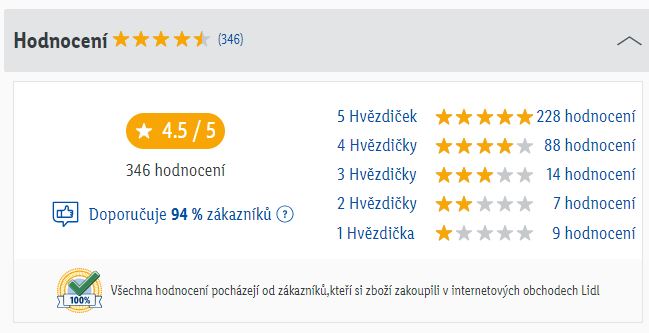 Na Heurece má k dnešnímu dni uživatelské hodnocení 87 % (18 recenzí) a na Lidl-shopu 90 % (346 hodnocení). V obou případech jej doporučuje 94 % uživatelů. Většina hodnoceních je zcela pozitivních nebo s drobnými výhradami. Uživatelé si chválí především dostatečný výkon, dobrou cenu a snadnou obsluhu. Jako největší nevýhodu uvádějí nízkou kvalitu zpracování sběrného koše.
