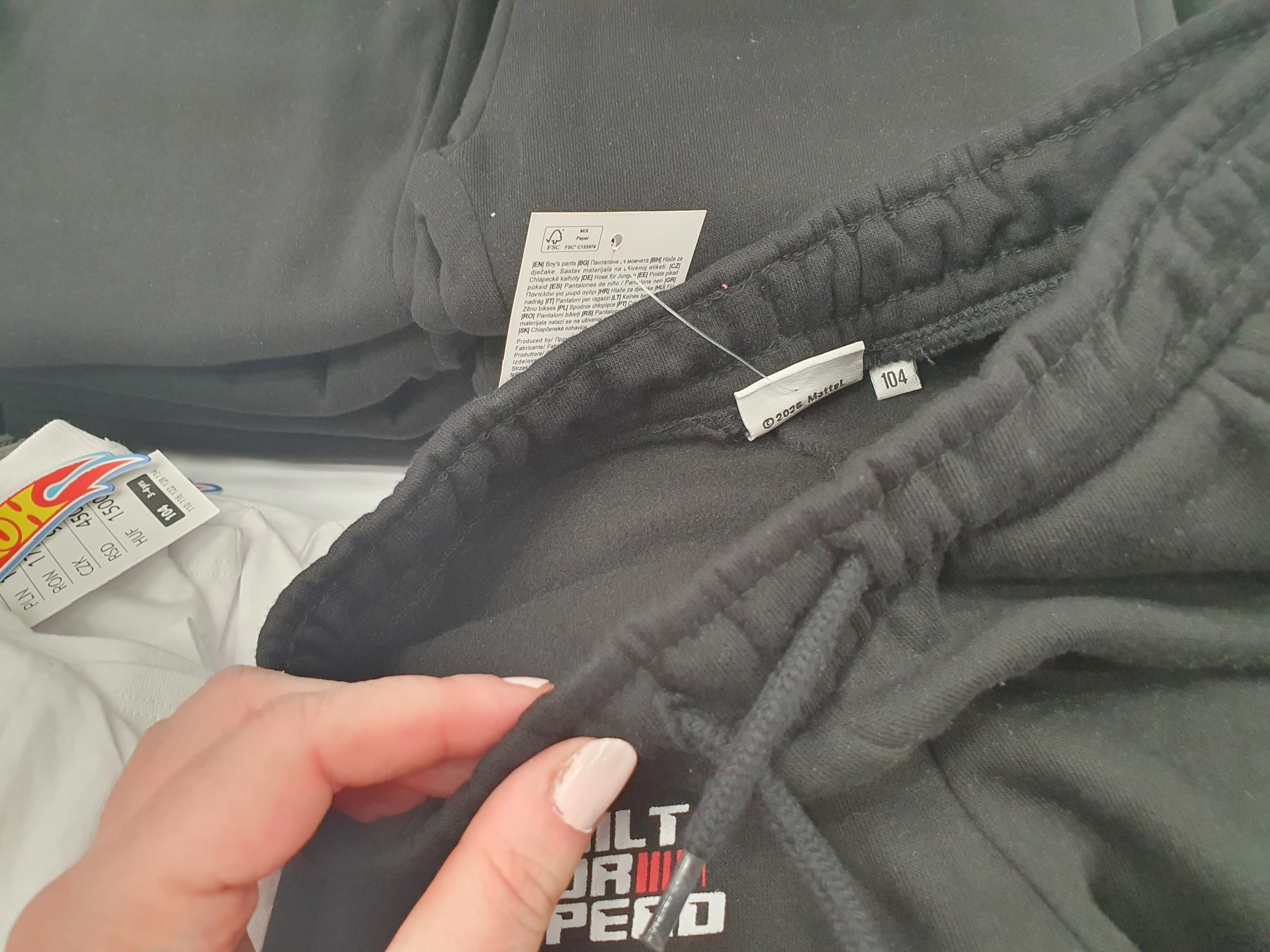 Černé tepláky svým potiskem ladí s černým tričkem ze sady dvou triček, kterou jsme uvedli výše. Mají dva menší obrázky, na každé nohavici jeden. Nechybí jim kapsy, guma a šňůra v pase pro pohodlné nošení. Vnitřek tvoří jemná látka, tepláky jsou z 80 % z bavlny a z 20 % z polyesteru. Pořídíte je ve velikostech 104 – 134.