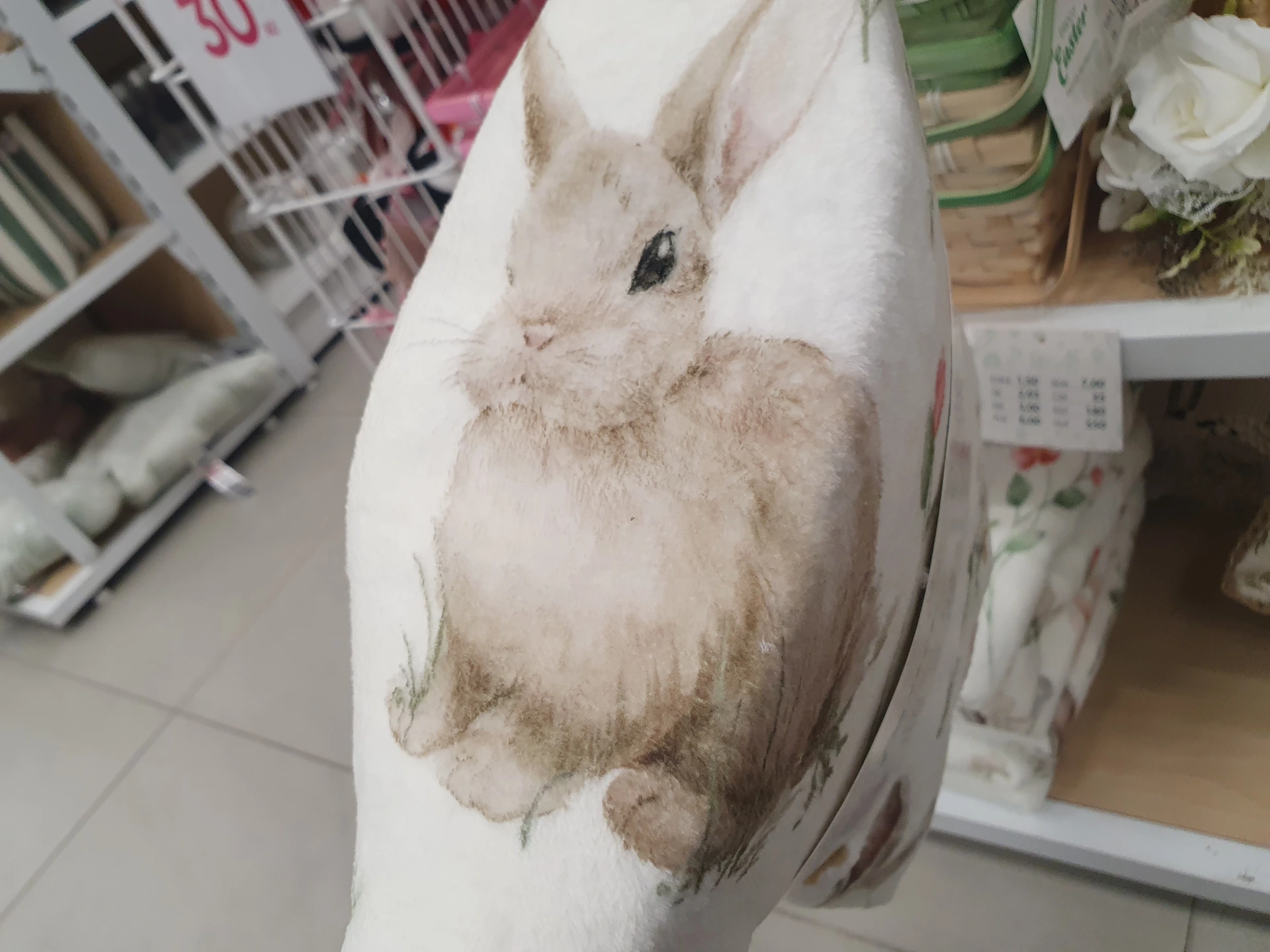 Bílá, velmi měkká deka s potiskem roztomilých zajíců a květin, ozdobí velikonoční domácnost, ale je i jako dělaná do dětského pokoje. Odpovídají tomu i menší rozměry 130 x 170 cm.