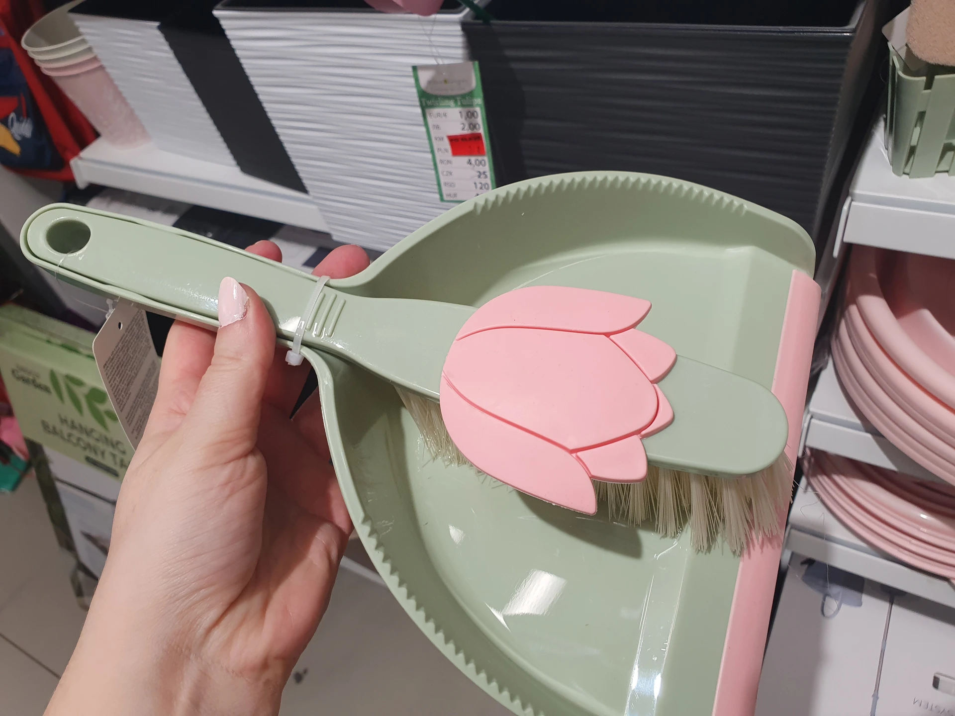 Díky plastické květině na rukojeti smetáku má sada i dekorační funkci. Kombinace pastelových barev zelené a růžové není výrazné a nepůsobí rušivě. Lopatka je na konci zakončená pružnou lištou, díky které na ni snadno nametete i drobné nečistoty.