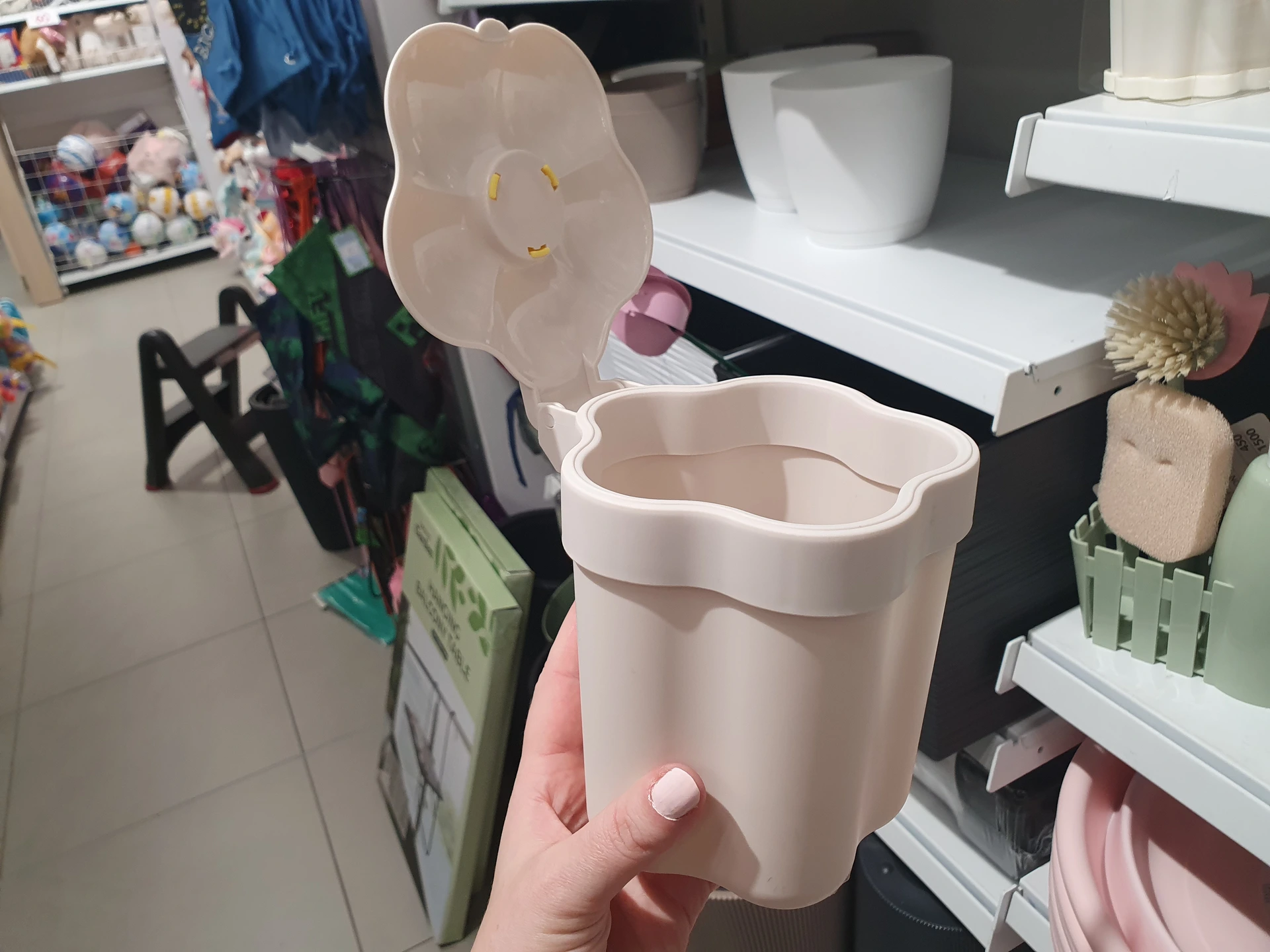 Koš s objemem 850 ml je ideální na kuchyňskou linku pro bioodpad nebo do koupelny třeba na vyhazování odličovacích tamponů. Roztomilé zpracování ve tvaru květiny v neutrální béžové barvě a se žlutým středem zapadne k různým stylům interiérů.