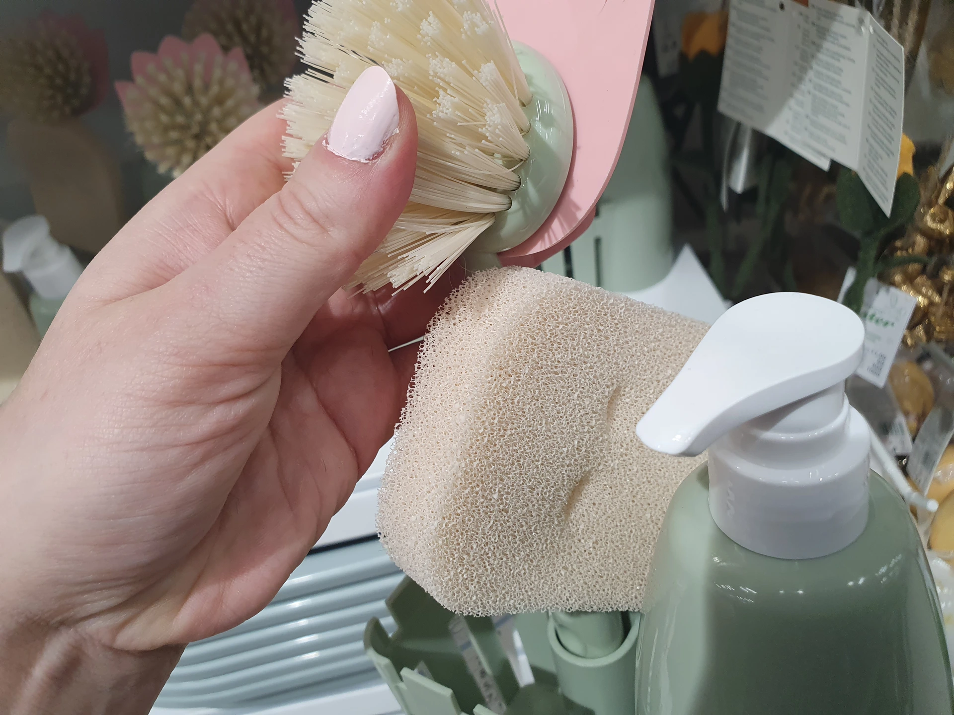 S kartáčem určeným na mytí nádobí zajistí pohodlnější a jednodušší mytí nádobí, ke kterému se díky dlouhé násadě nemusíte ohýbat. Násada měří 23 cm a kartáč je opět v zeleno-růžovém provedení s plastickou květinou jako ozdobou.