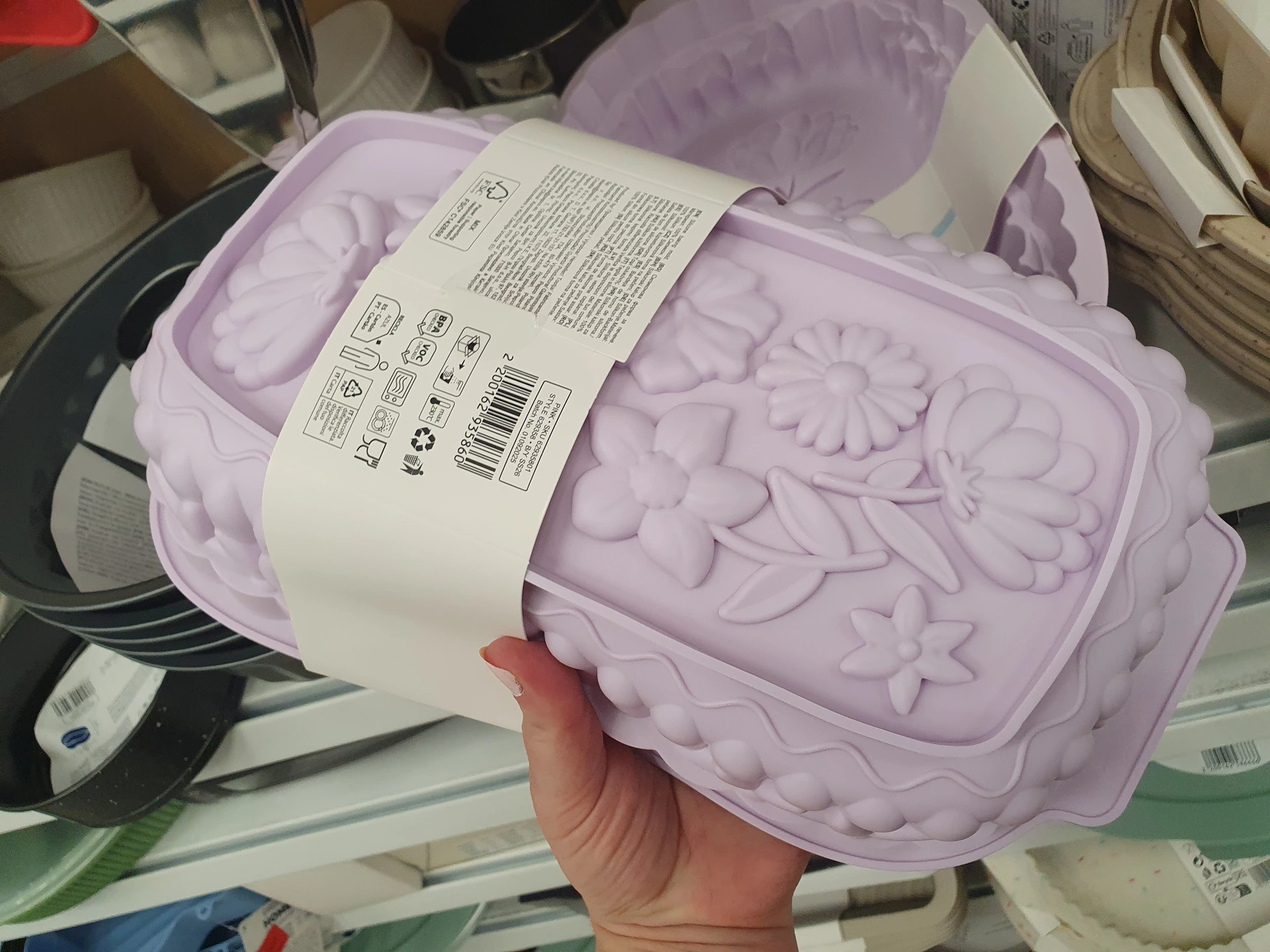 Květinový vzor najdete i na pomůckách do kuchyně, jako je velká silikonová forma na pečení, kterou můžete mýt i v myčce nádobí. Ta má na hřbetu bohatý květinový vzor. I na okrajích je vroubkování a trocha květin. Rozměry formy jsou 18 x 32 x 7 cm.