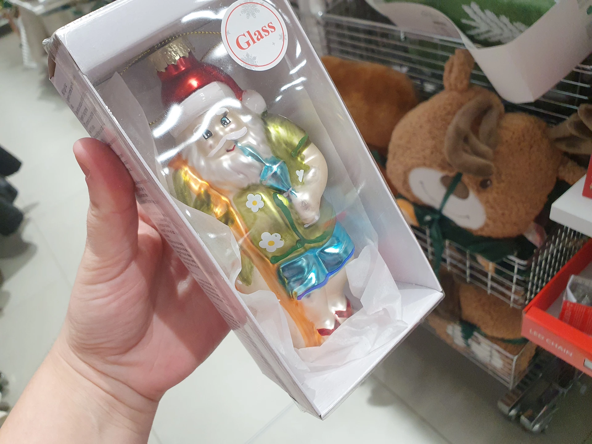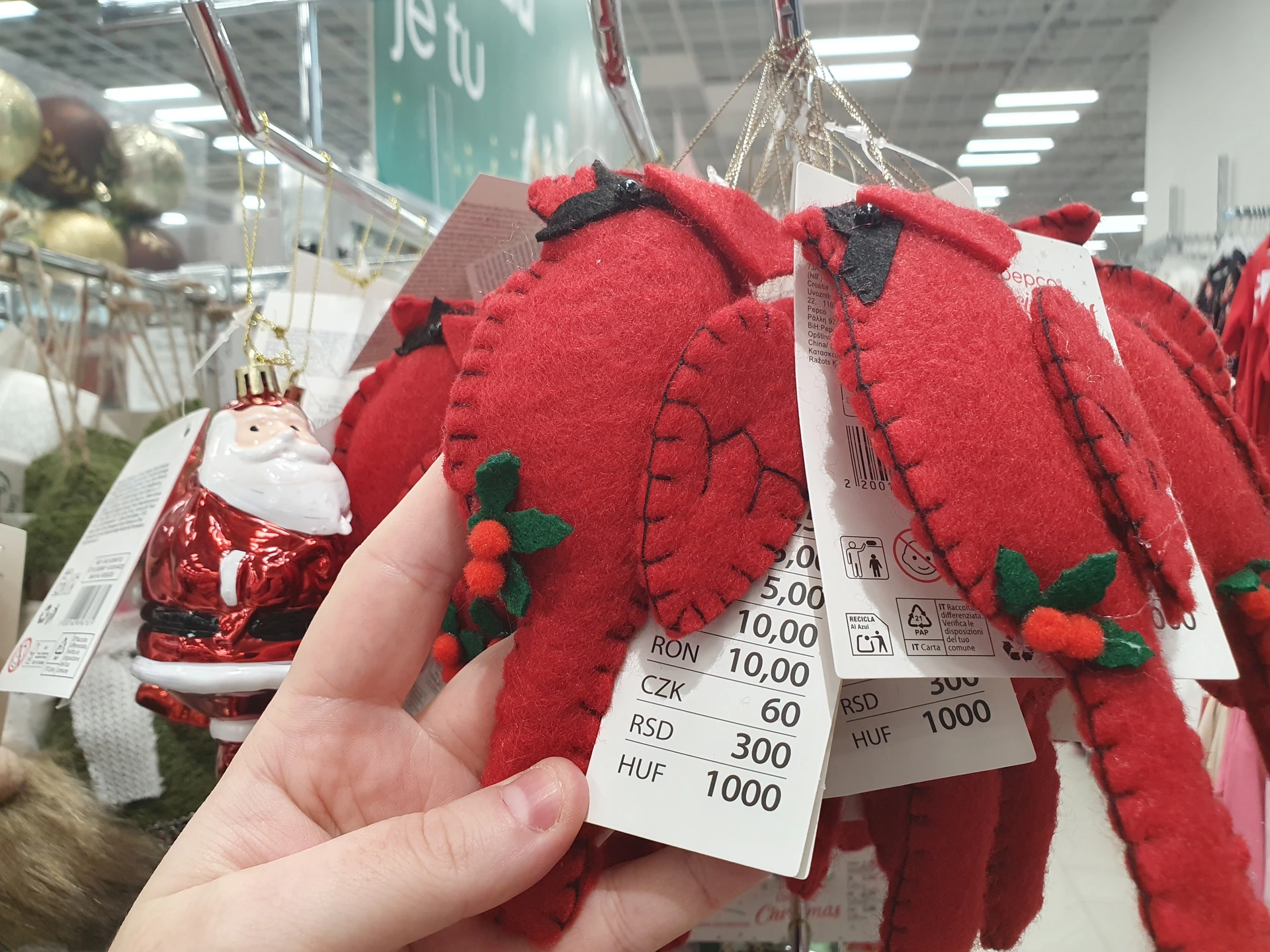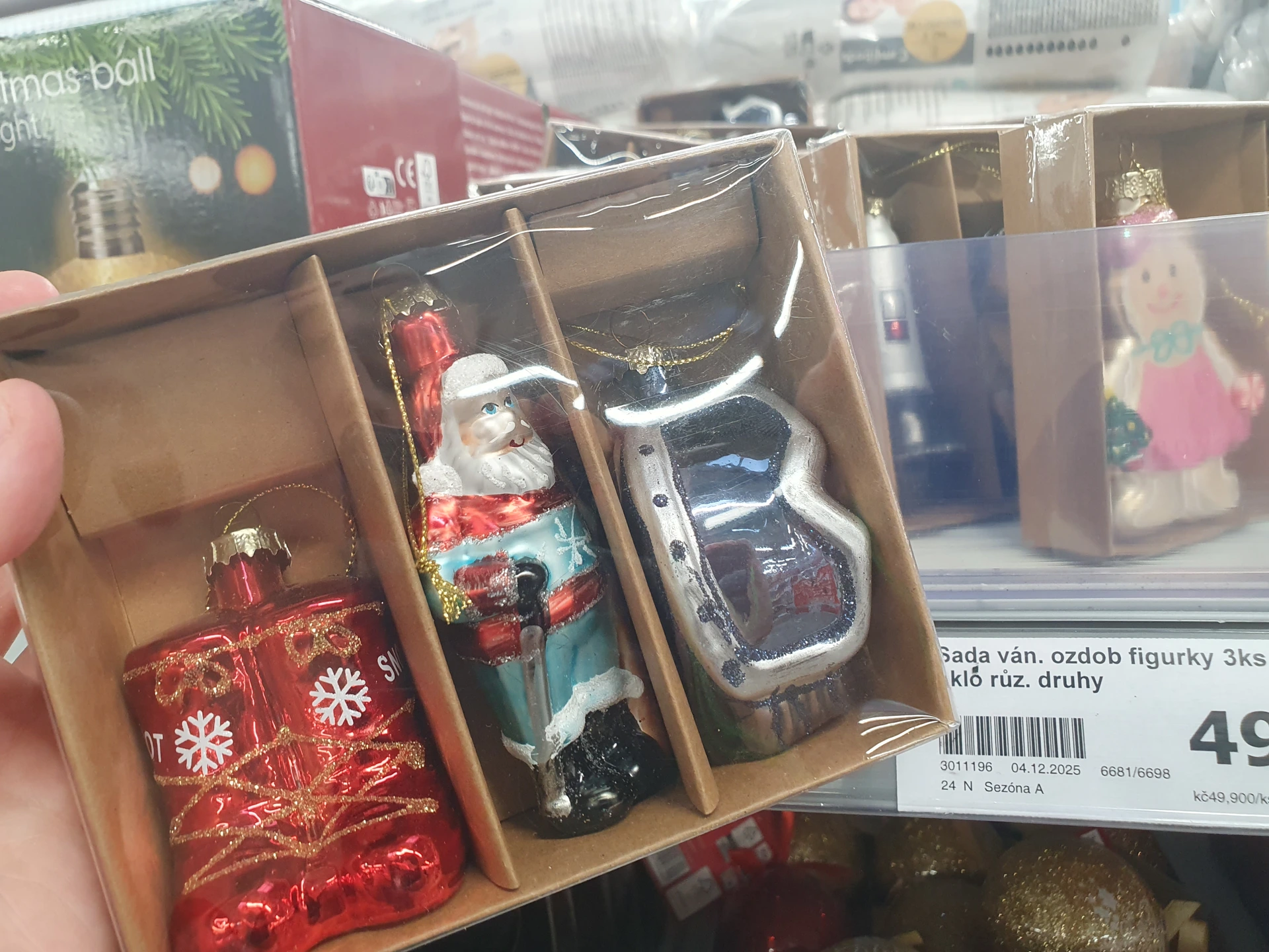 - Sklenění Santa Clausové: pokud hledáte netradiční ozdoby, ty se Santa Clausem z obou obchodů k nim určitě patří. V Pepco jej prodávají samostatně s plážovými doplňky a v letním oblečení, stojí 90 Kč. V Action jej mají v sadě jako lyžaře, dalšími ozdobami jsou sněhule a lyžařské brýle. Sada stojí 49,90 Kč.