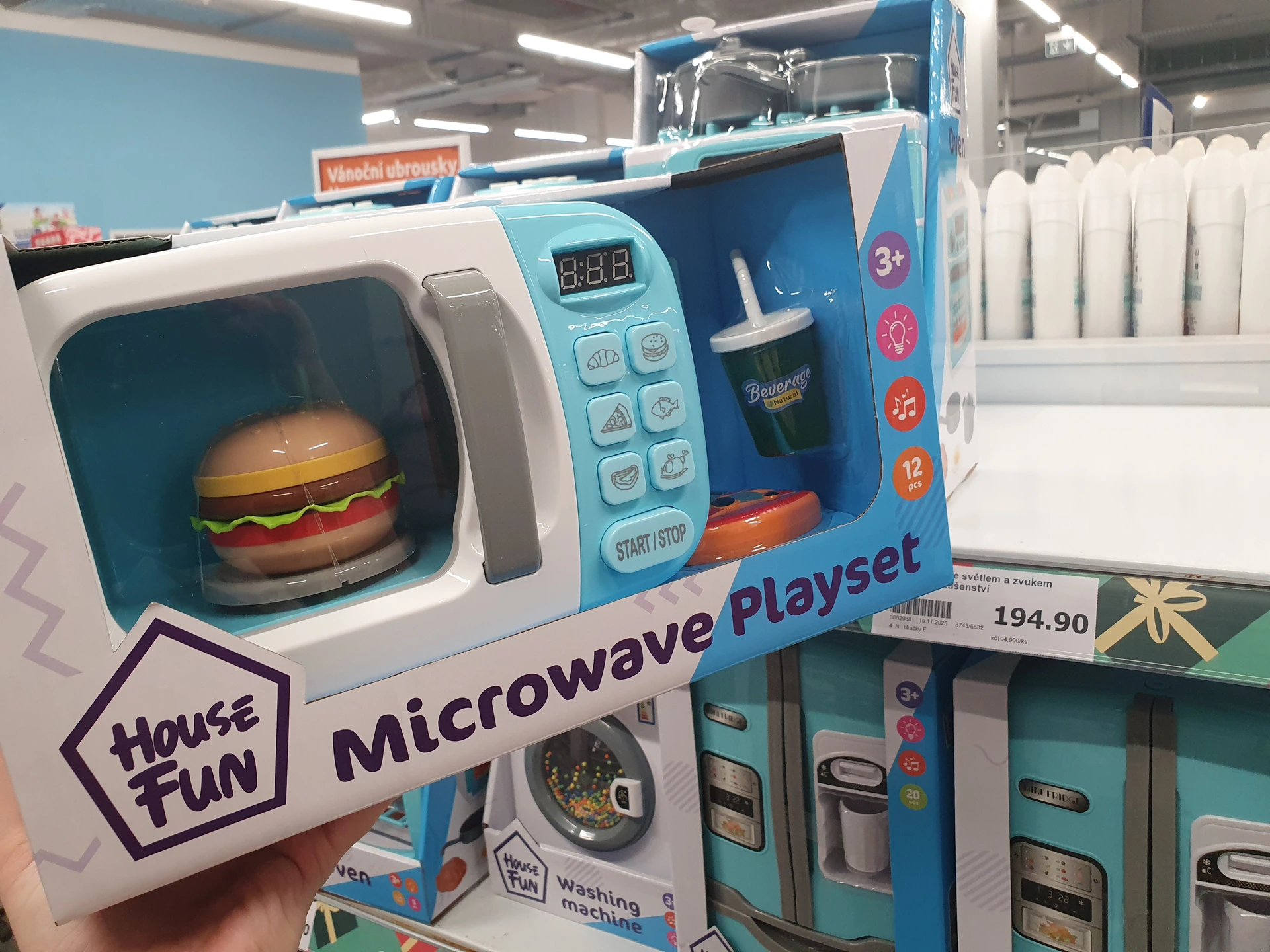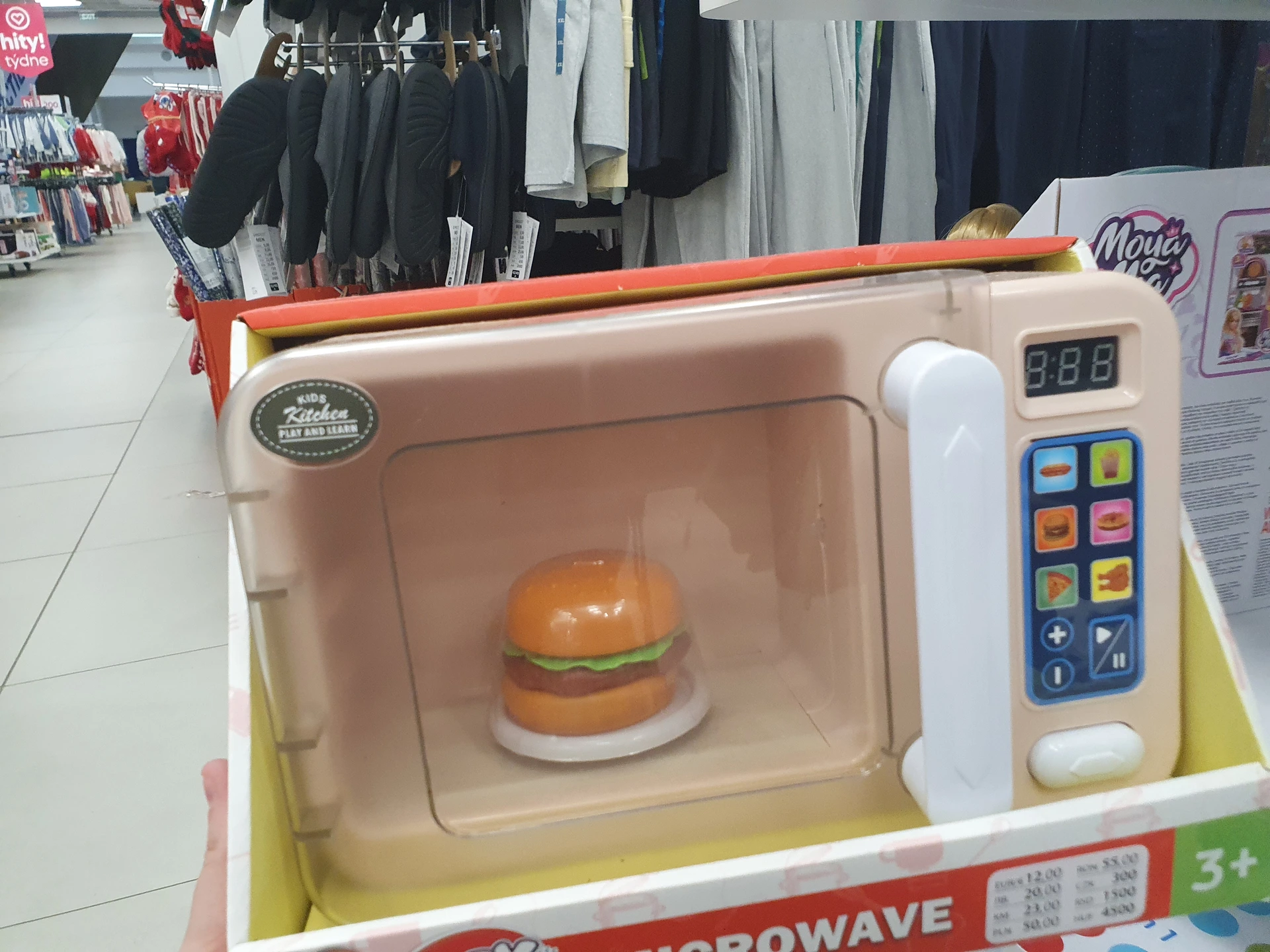 - Mikrovlnná trouba: podobných přístrojů do domácnosti na hraní mají oba obchody několik, jako příklad jsme vybrali mikrovlnku. Ta je levnější a je i lépe zpracovaná v Action, kde ji pořídíte za 194,90 Kč. Uvnitř má větší hamburger a vystouplá tlačítka. Mikrovlnku v Pepco pořídíte za 300 Kč. Obě hračky mají světelné a zvukové funkce.