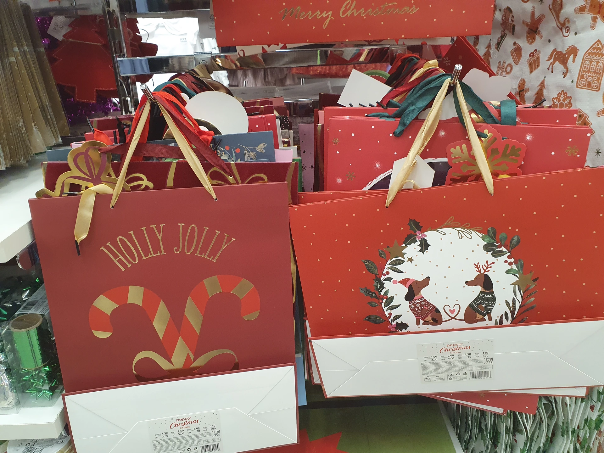 - Dárkové tašky: také dárkových tašek má Pepco větší výběr a v tomto případě vychází cenově lépe také Pepco, kdy za tašku podobné velikosti dáte 9 Kč, v Action stojí 15,90 Kč. Má ale lesklé provedení. Tašky v Action mají i jednodušší vzory a zdobení.