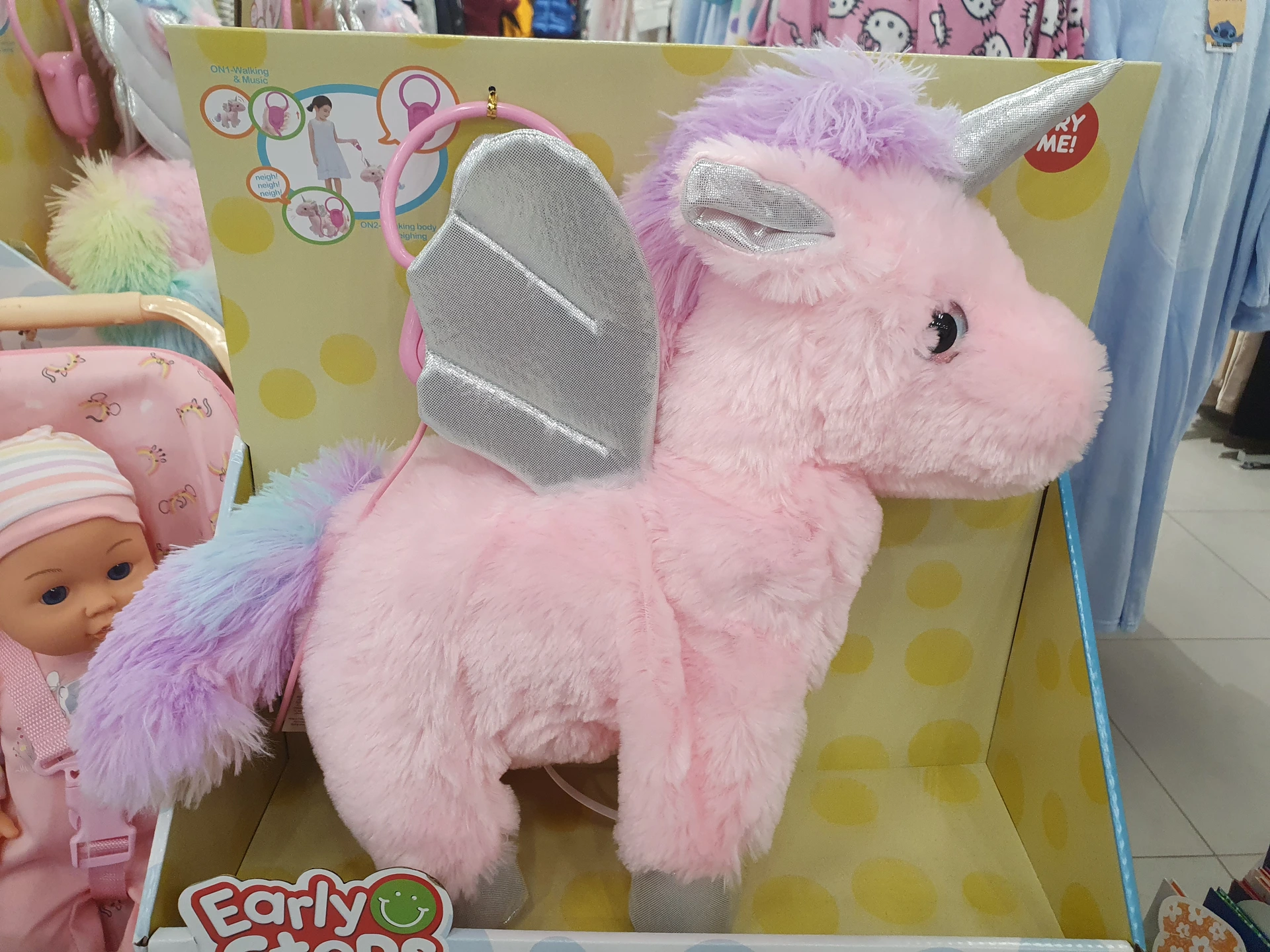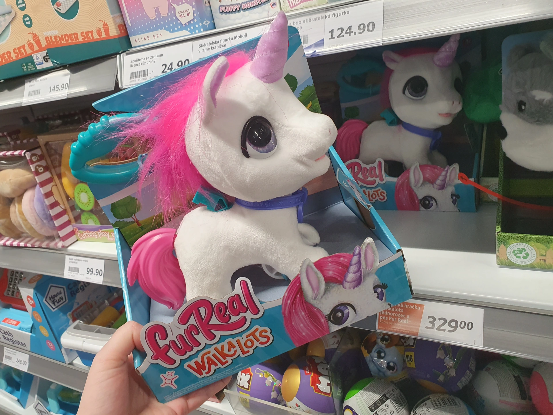 - Jednorožec na vodítku: roztomilého plyšového jednorožce pořídíte v Pepco za 420 Kč, obdobnou hračku mají i v Tady stojí 329 Kč, což je až do 23.12. akční cena. Obě hračky se hýbou a vydávají zvuky. Ta z Pepco více připomíná plyšáka, v Action zase více figurku.