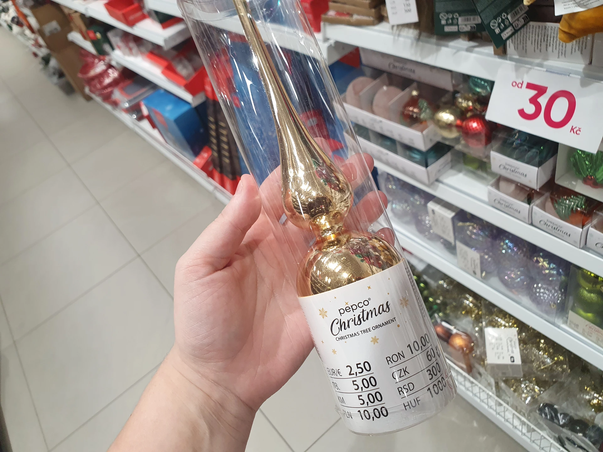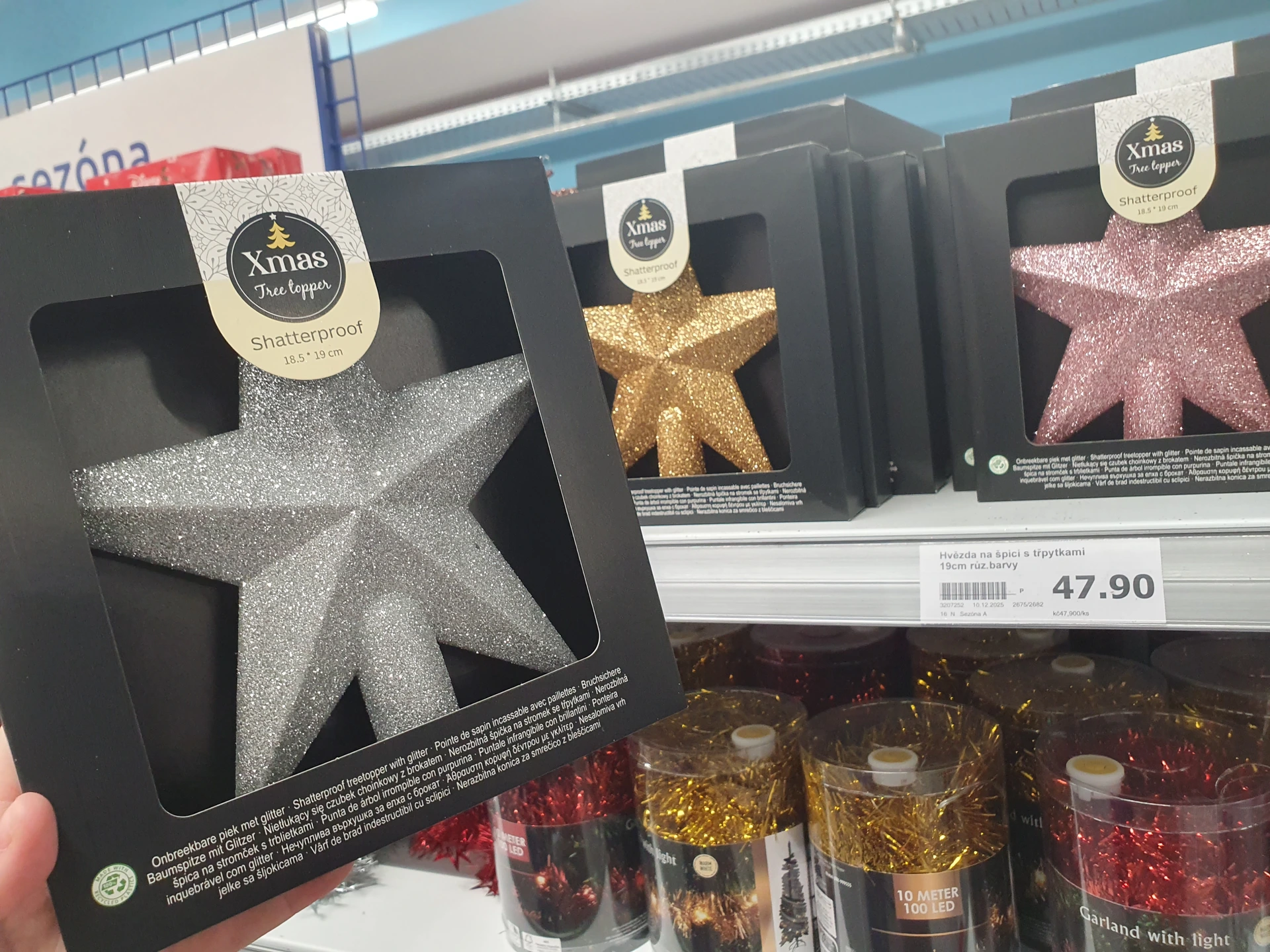 - Ozdoby na špici stromečku: v Pepco koupíte klasickou špičku ve zlaté nebo stříbrné barvě za 60 Kč. V Action pořídíte třpytivé hvězdy ve stříbrné, zlaté či růžové barvě za 47,90 Kč.