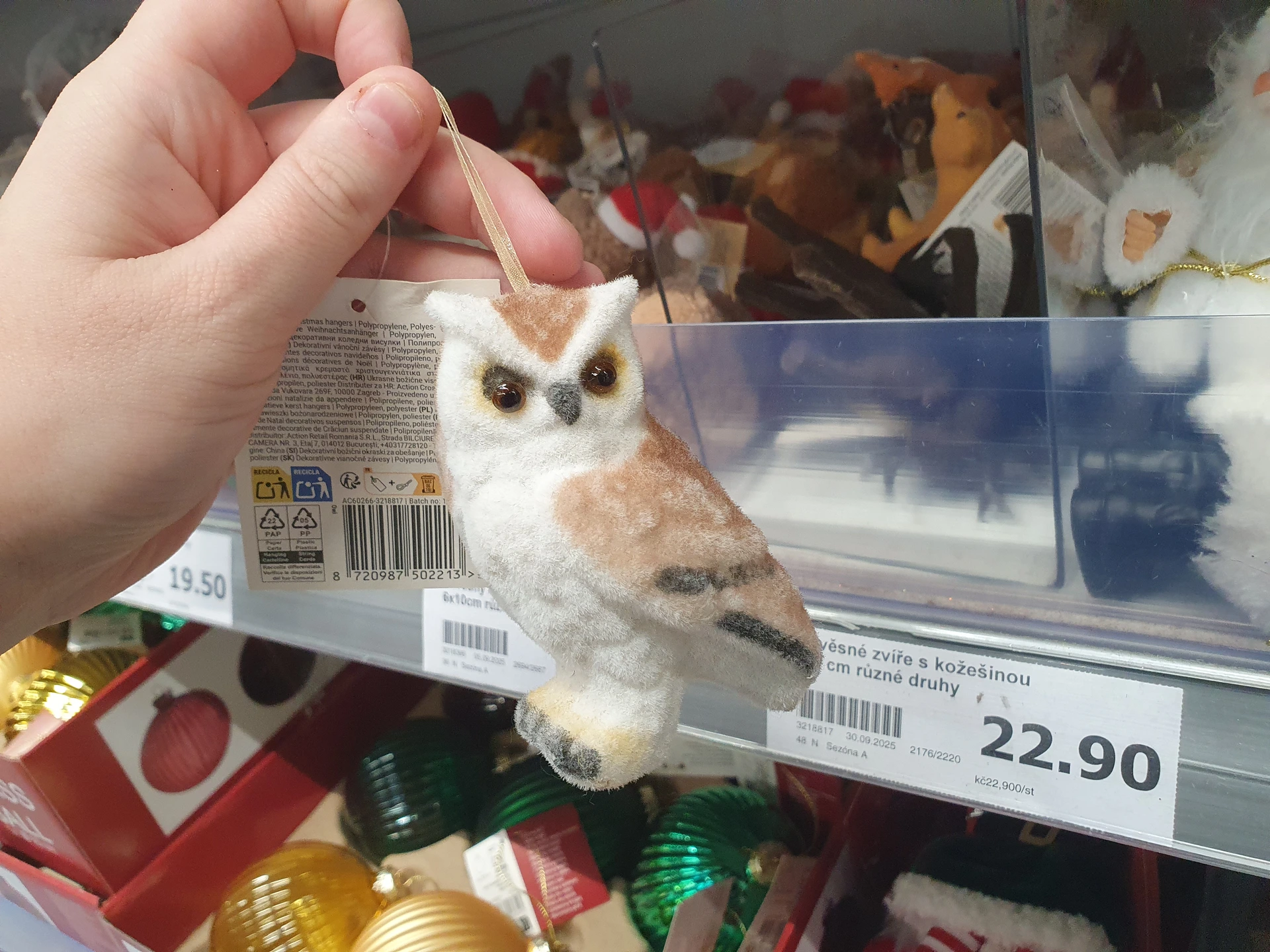 - Závěsná zvířátka: stromeček můžete oživit i lesními zvířátky. Oba obchody nabízí několik druhů. V Action jsou levnější, ale ne tolik propracované, stojí 22,90 Kč. Detailněji zpracované ozdoby v Pepco pořídíte za 35 Kč.