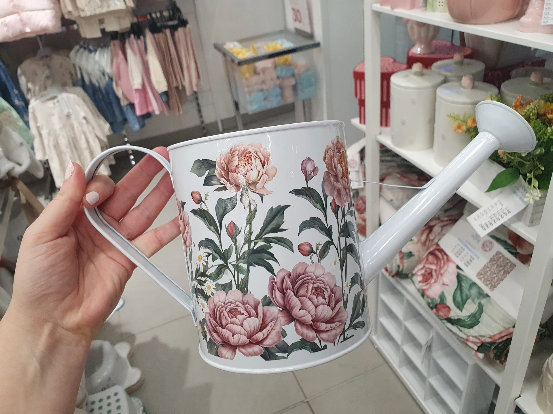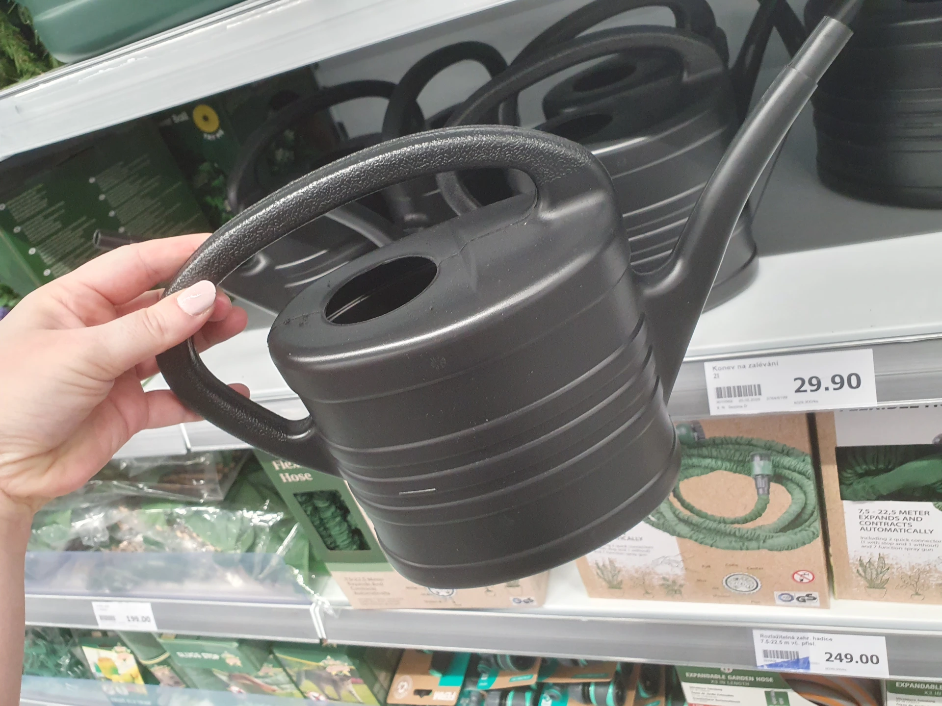 V Action jsme našli čistě praktickou konev na zalévání. Má klasický tvar, objem 2 litry, černou barvu a stojí 29,90 Kč. V Pepco jsme objevili konev, která kromě praktické funkce působí také jako dekorace. Je plechová, bílá a s kresbou květin, objemem 1,4 litru a cenou 130 Kč.