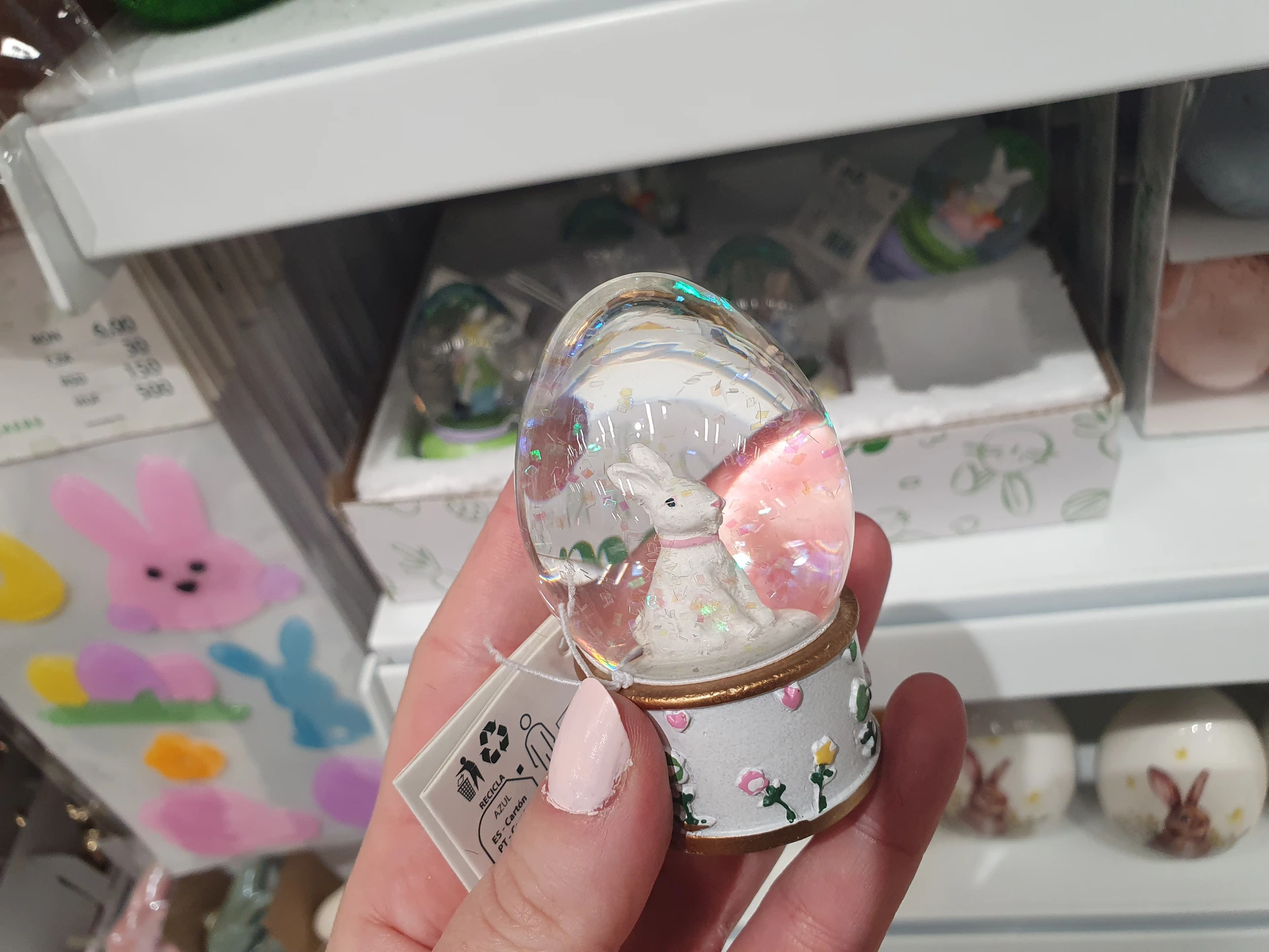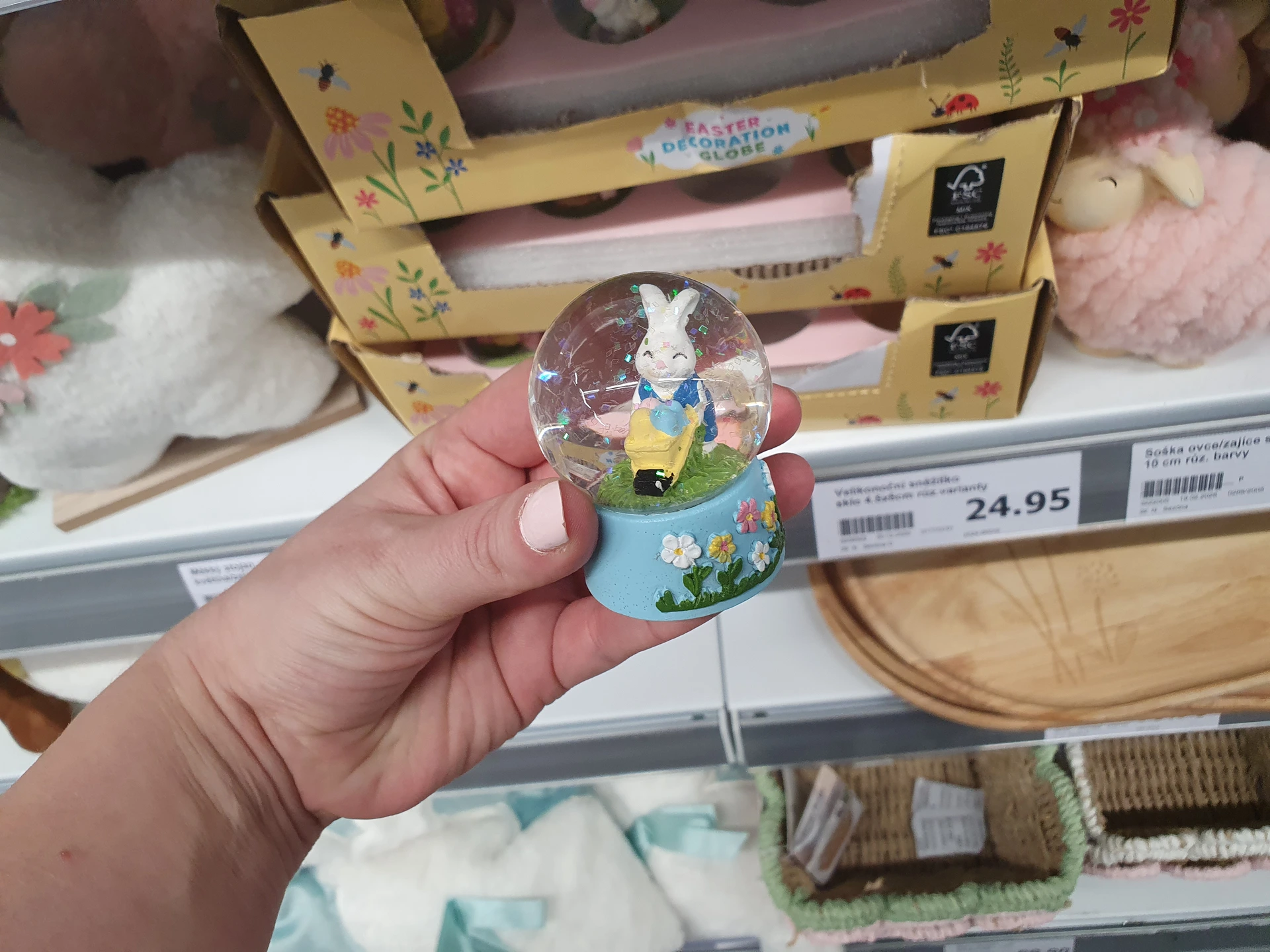 Pěkným dárkem do velikonočního balíčku pro děti jsou i mini velikonoční sněžítka s flitry a velikonočními postavičkami. V Action mají klasický kulatý tvar a cenu 24,95 Kč, v Pepco mají tvar vejce a stojí 30 Kč.