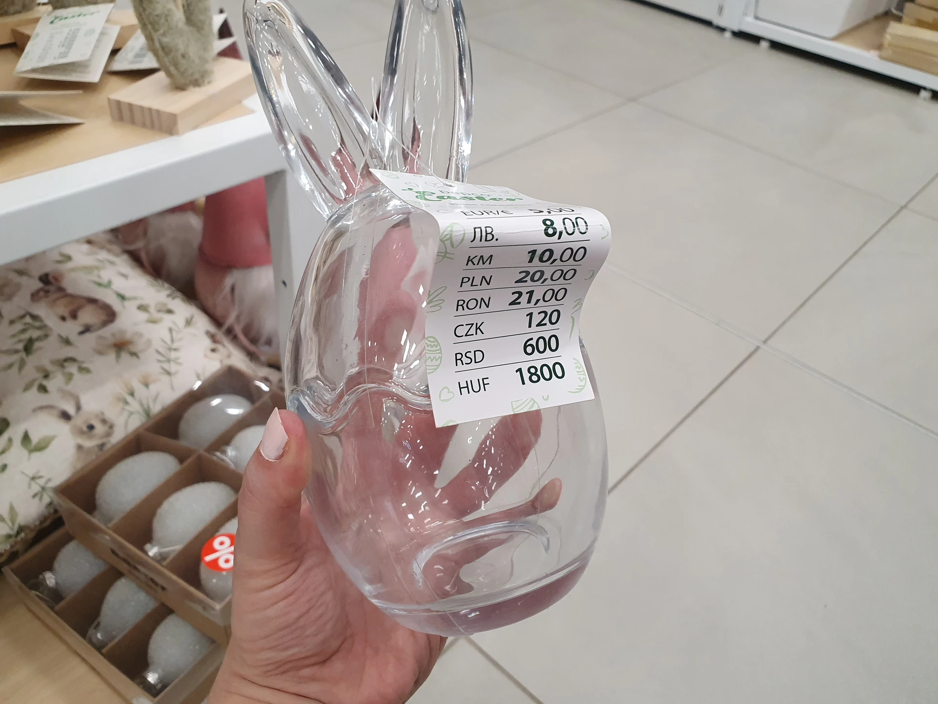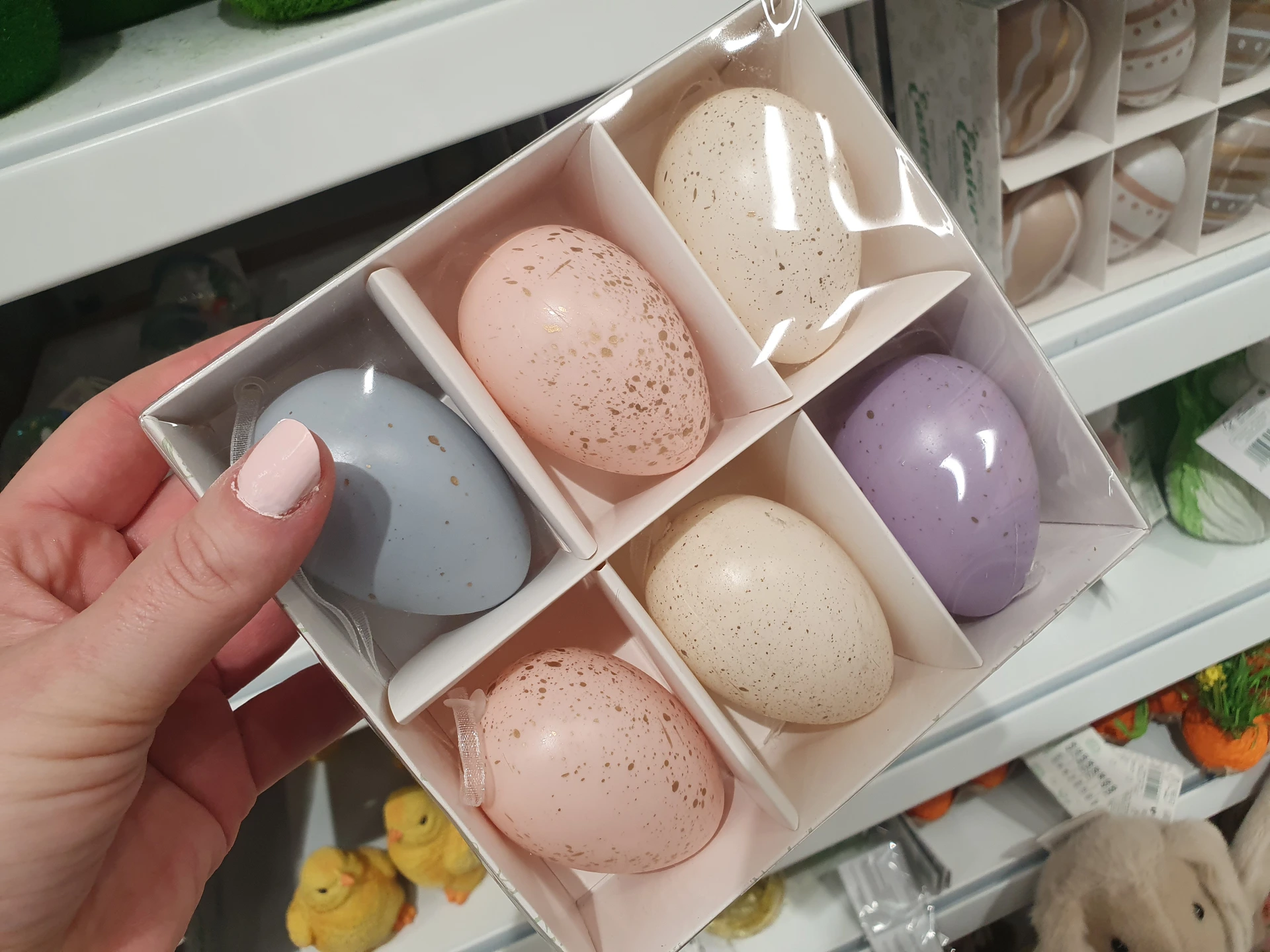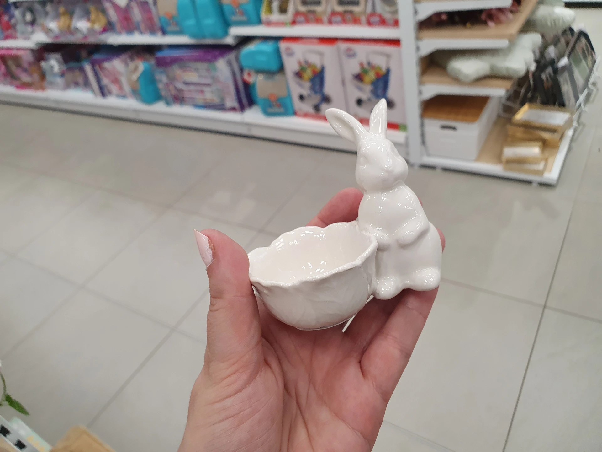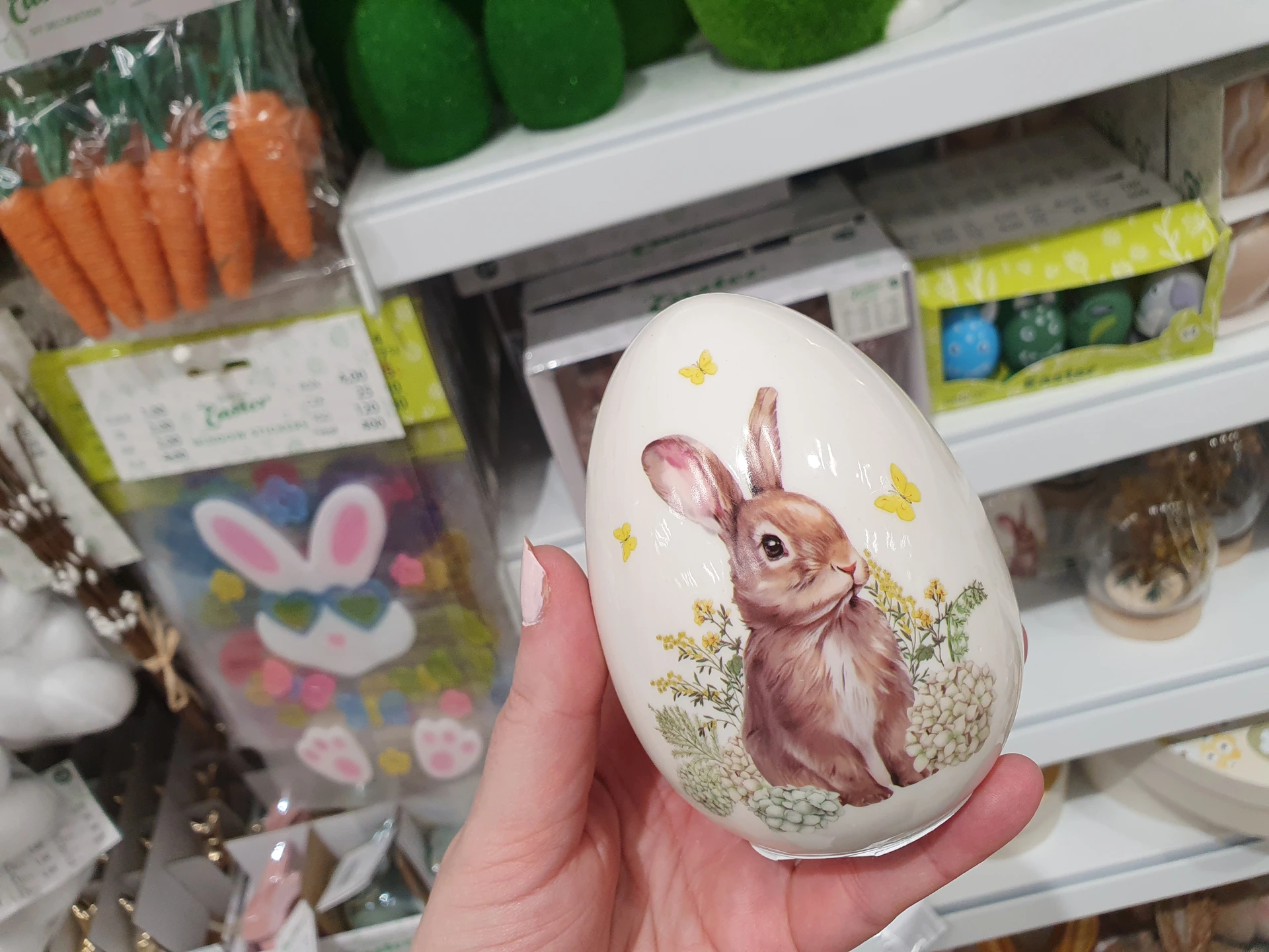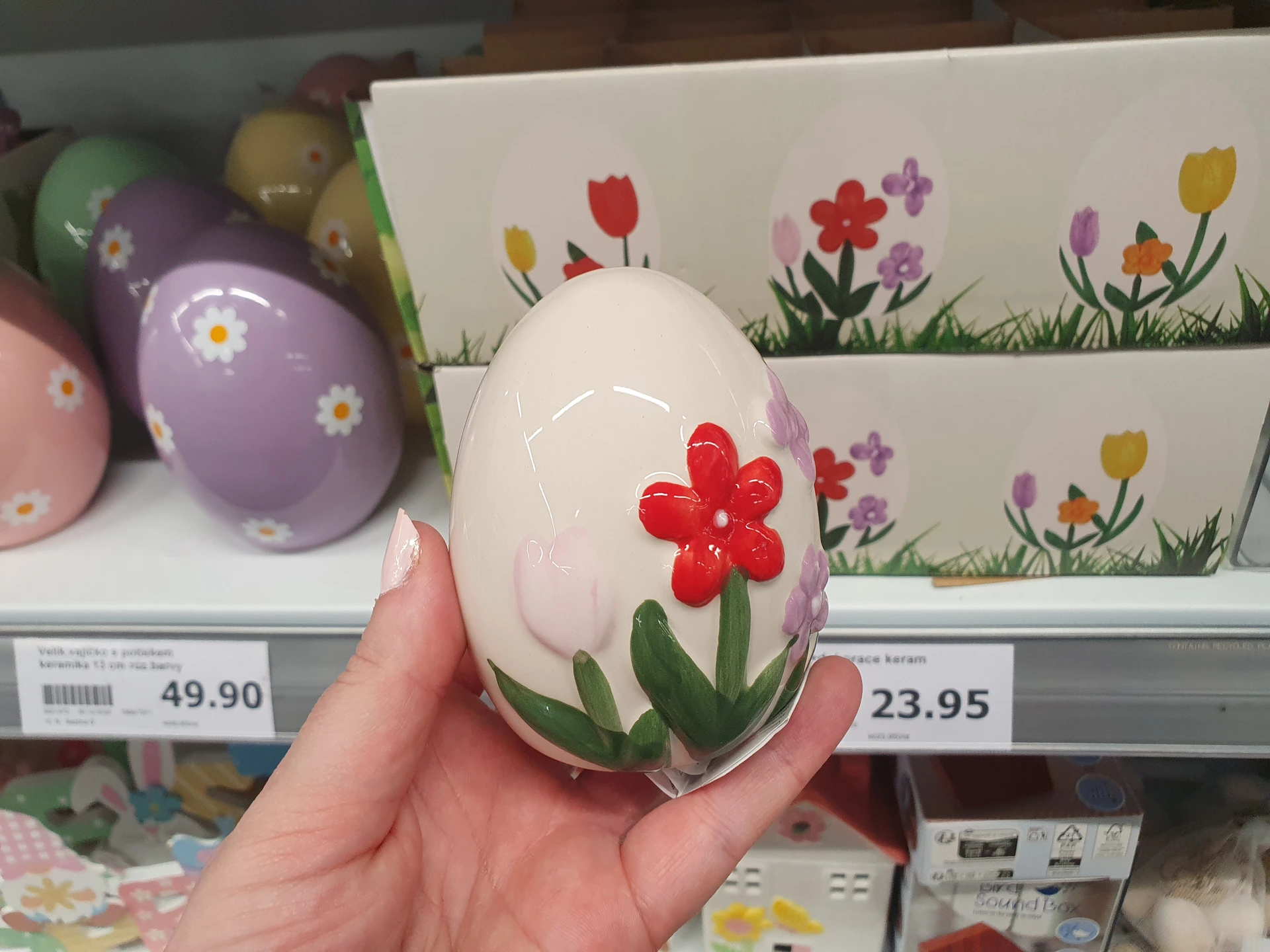 Trpaslíci v pastelových barvách, kteří drží vejce, jsou v regálech obou obchodů. V Action stojí 36,90 Kč a v Pepco je o trochu větší s cenou 60 Kč.