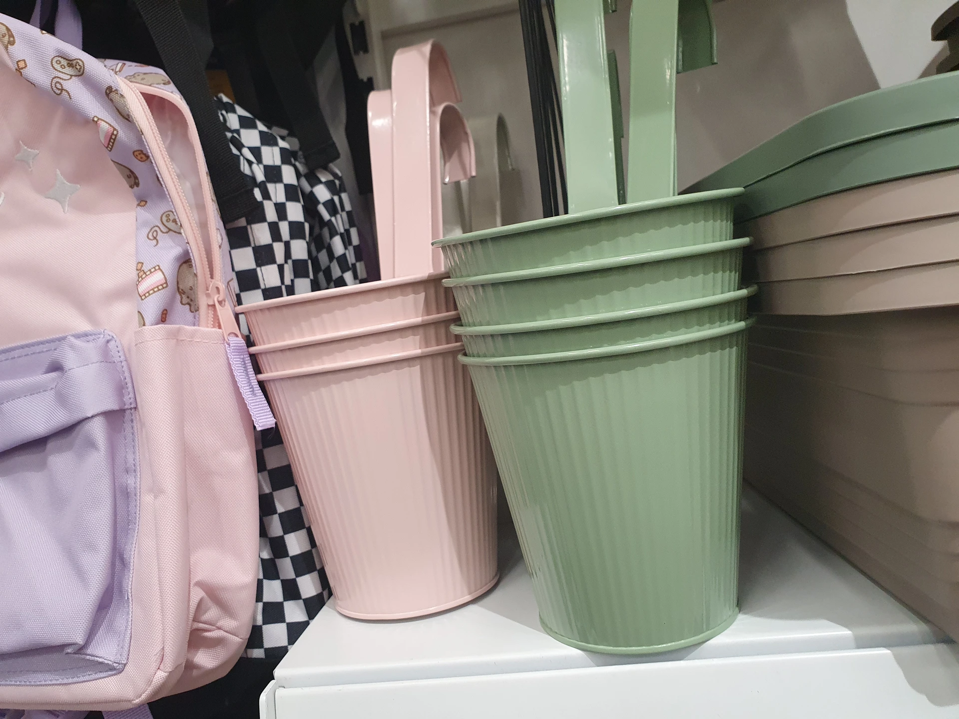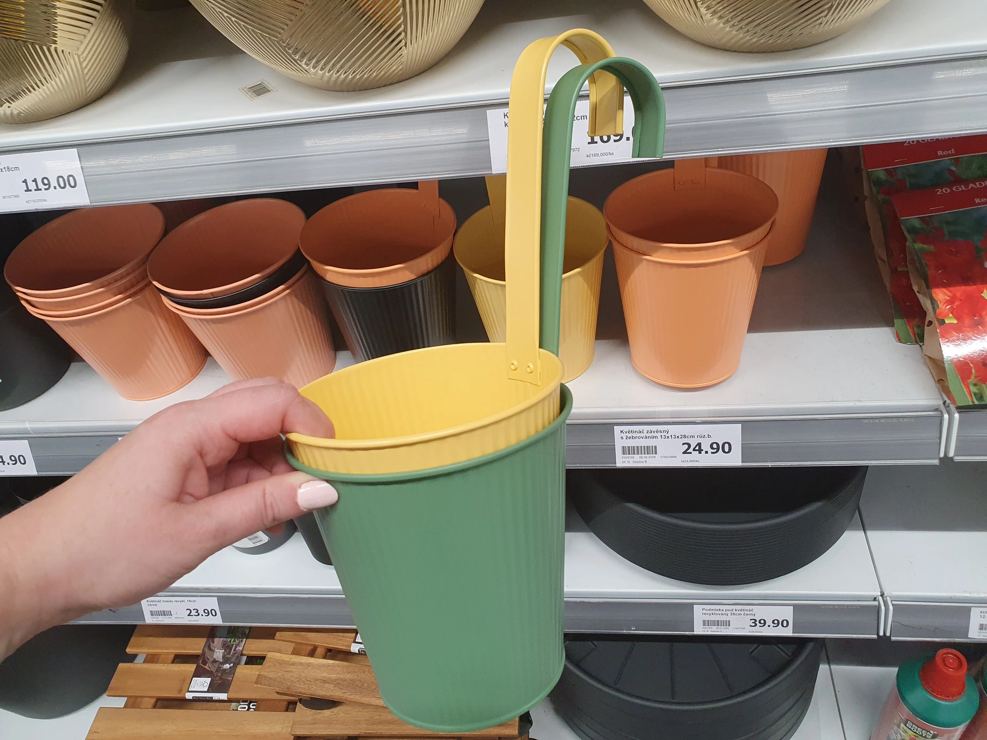 Téměř stejné kovové květináče na zavěšení mají v obou obchodech. V Action jej mají spíše v tlumenějších barvách a za cenu 24,90 Kč, pořídíte je tu ve žluté, zelené, béžové či černé. V Pepco stojí 30 Kč a mají pastelové barvy – zelenou, růžovou a bílou.