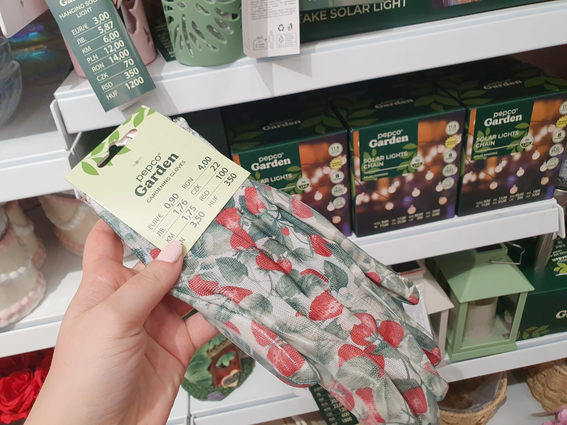 Větší výběr zahradnických rukavic nabízí Action. Společnou mají nabídku spíše dámských rukavic s květinovými vzory. V Pepco stojí rukavice 22 Kč, v Action zaplatíte 19,90 Kč.