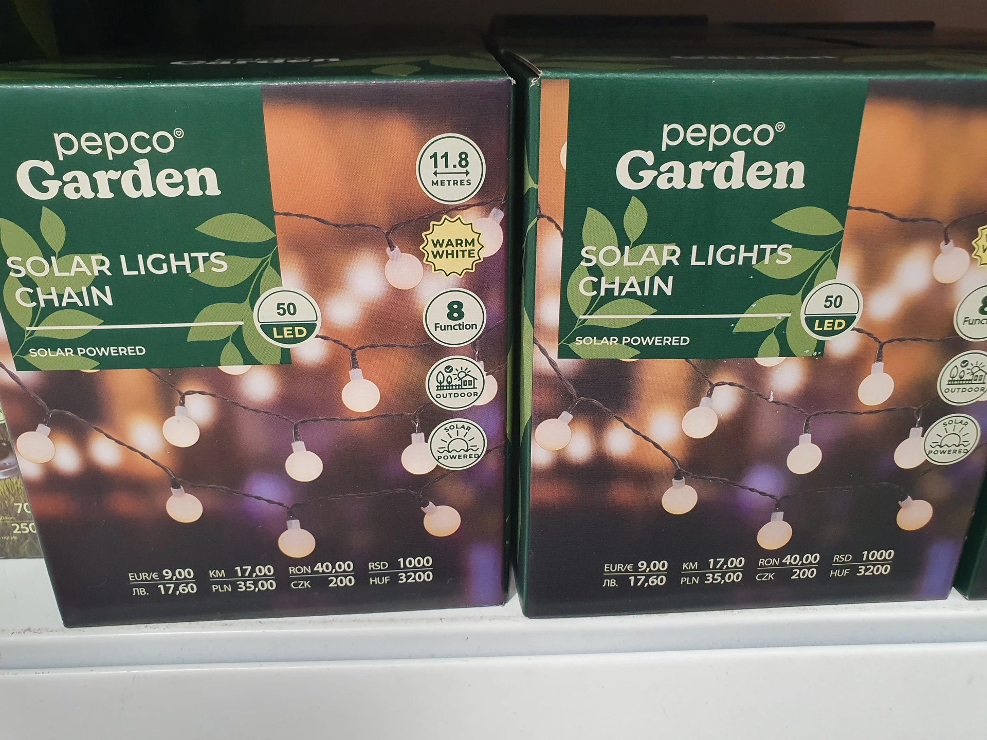 V obou obchodech pořídíte i delší řetězy, které na sobě mají 50 drobných žárovek. V Action je mají v bílé i barevné variantě za cenu 119,90 Kč, jsou ale jen do zásuvky. Řetěz v Pepco je dostupný jen v bílé variantě za cenu 200 Kč, je ale solární.