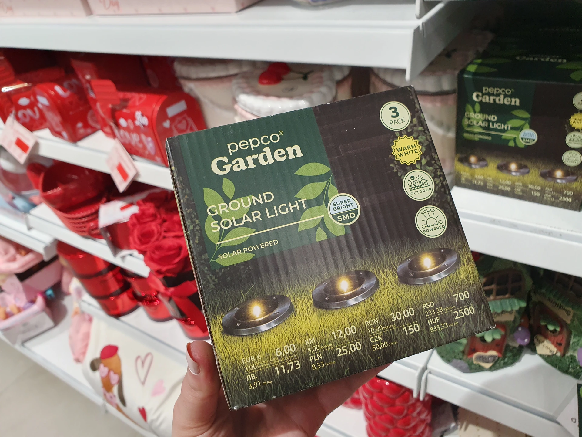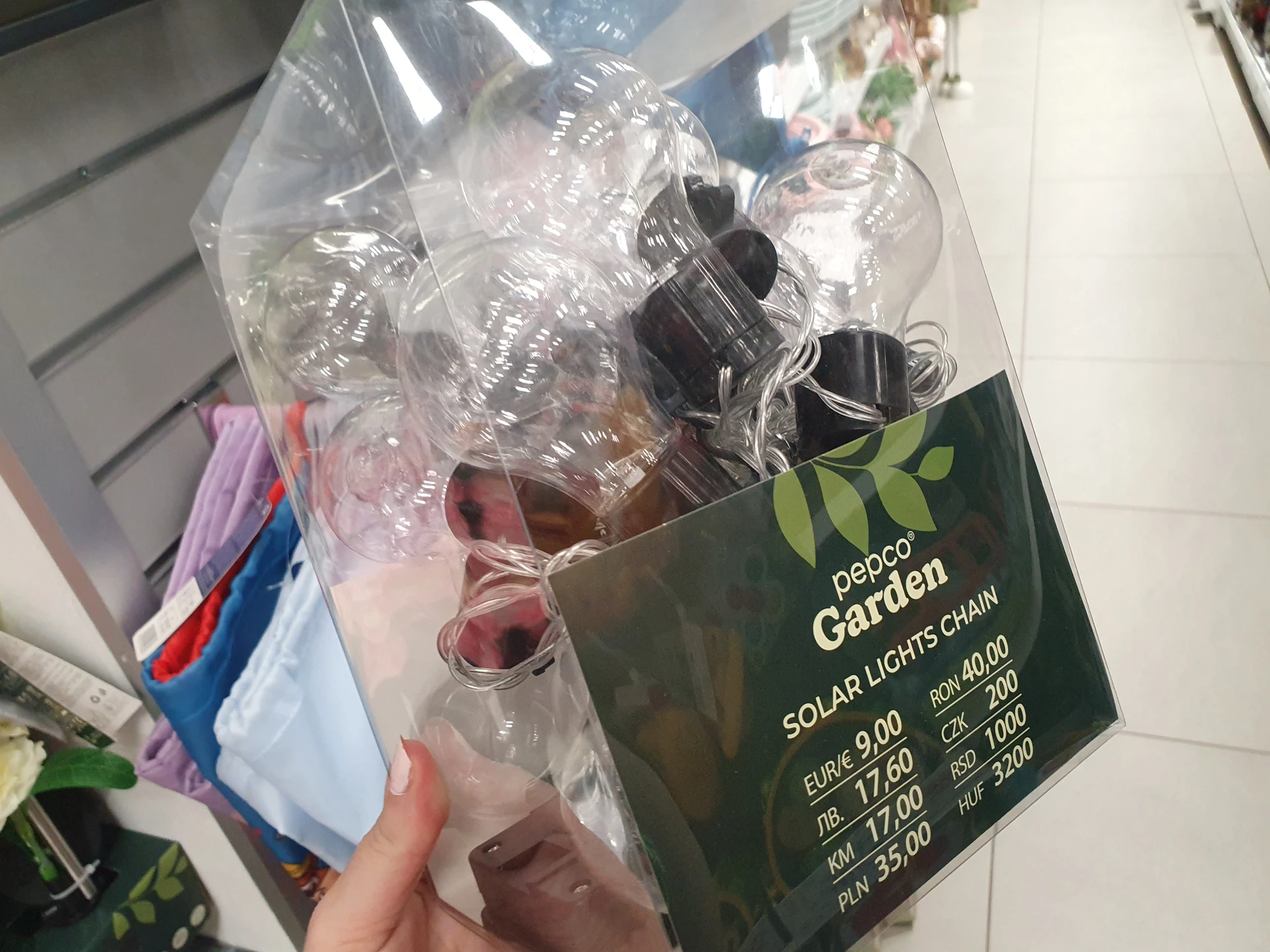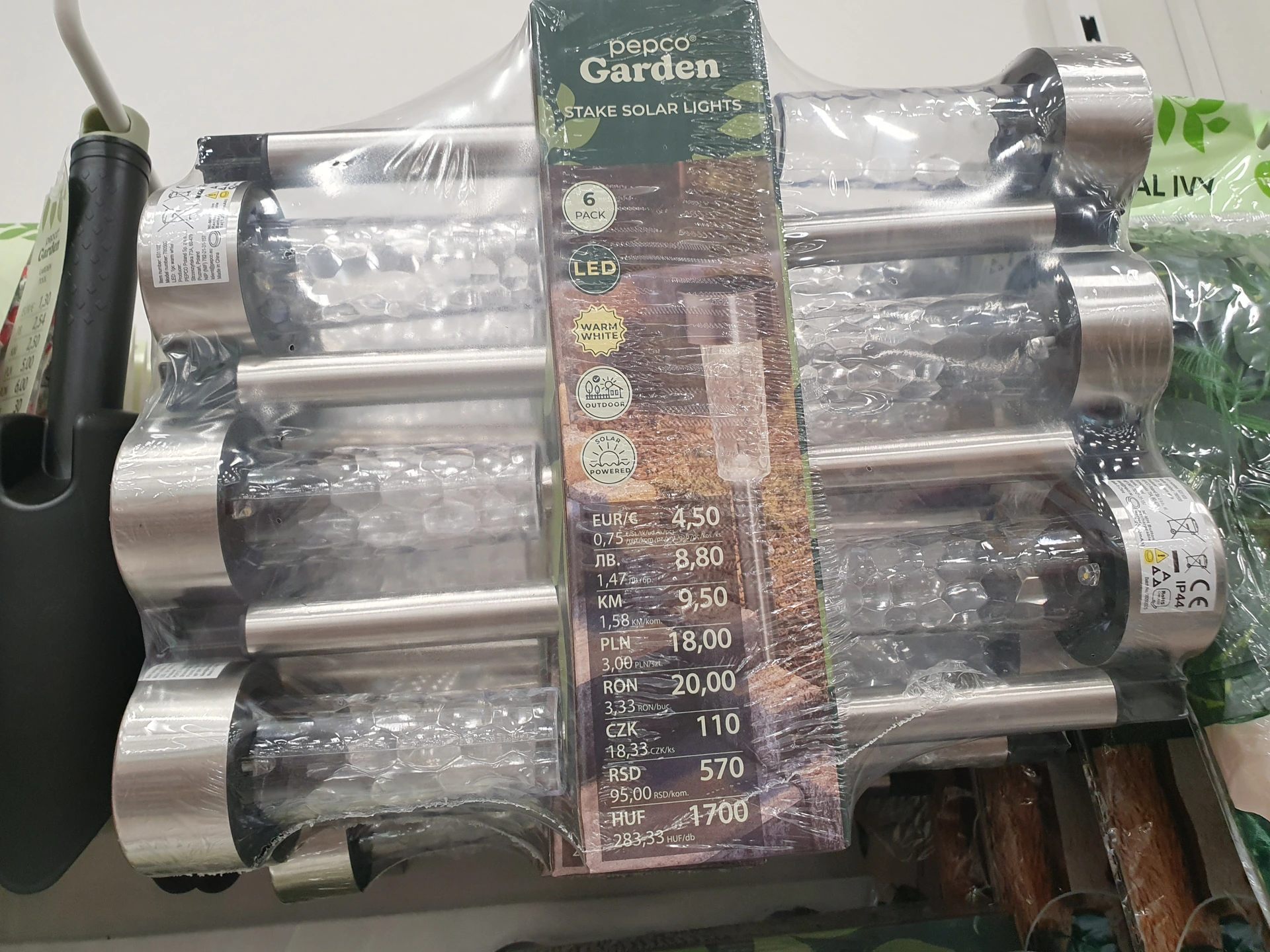Na pohled stejnou sadu nabízí v obou obchodech. Stříbrná solární světla na zapíchnutí do země a s průhledným bublinkovým krytem. V Action má ale 7 kusů a stojí 125 Kč, tedy 17,90 Kč za kus. Balení v Pepco je jen po 6 kusech a stojí 110 Kč, tedy 18,30 Kč za kus.