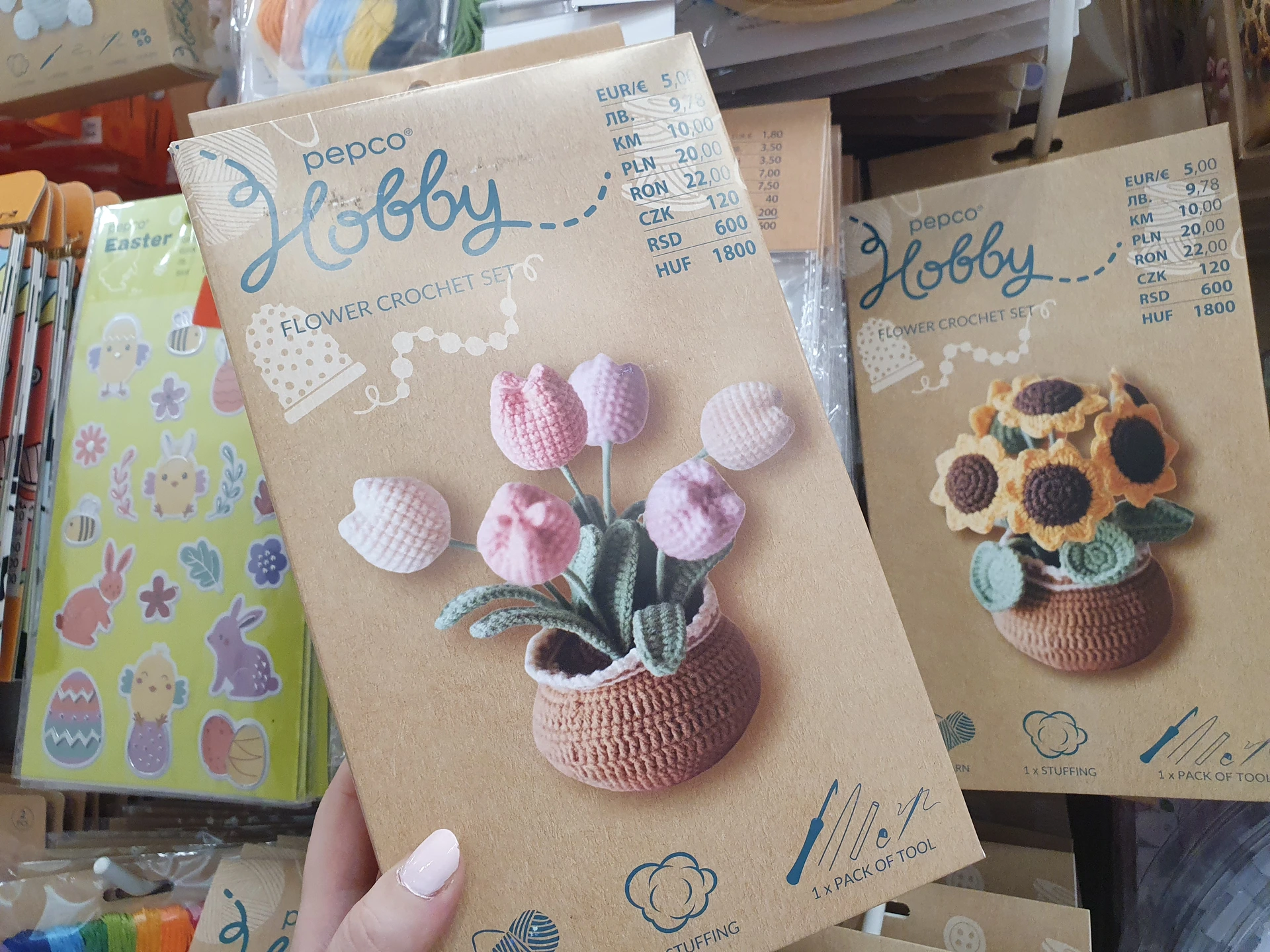Větší nabídku potřeb pro háčkování má Action, kde najdete velký výběr přízí i háčků na háčkování. Také kompletních sad nabízí větší množství, cenově na podobné produkty vychází výhodněji. V Pepco ale neuvádí výsledné rozměry uháčkovaných předmětů, proto je to jen orientační údaj. Nabídka v Pepco je menší, ale některé vzory jsou propracovanější. A kromě zvířátek máte na výběr i květiny.