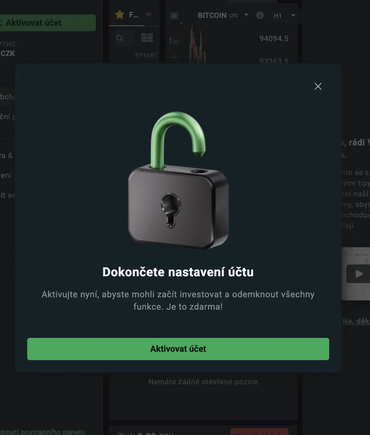 3. Máte-li hotovo, můžete kliknout na zelené tlačítko dole s názvem „Otevřít účet“.