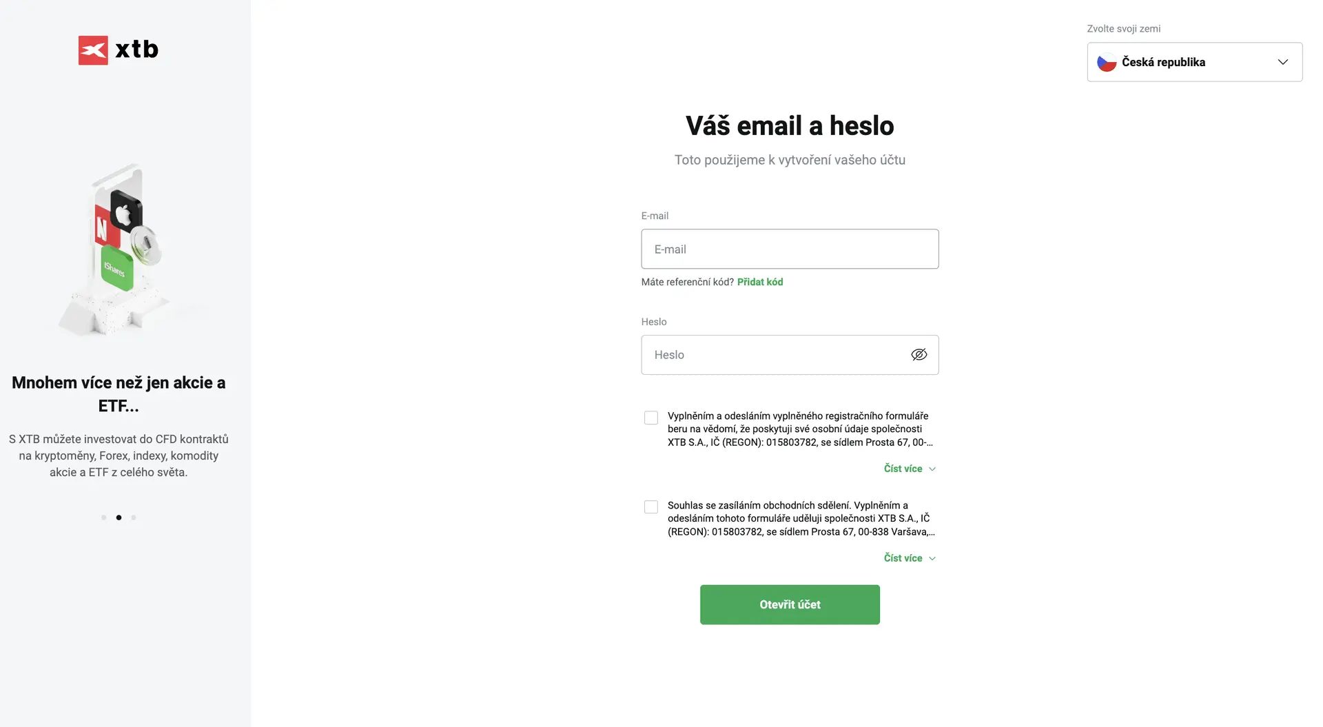 Registrace u XTB