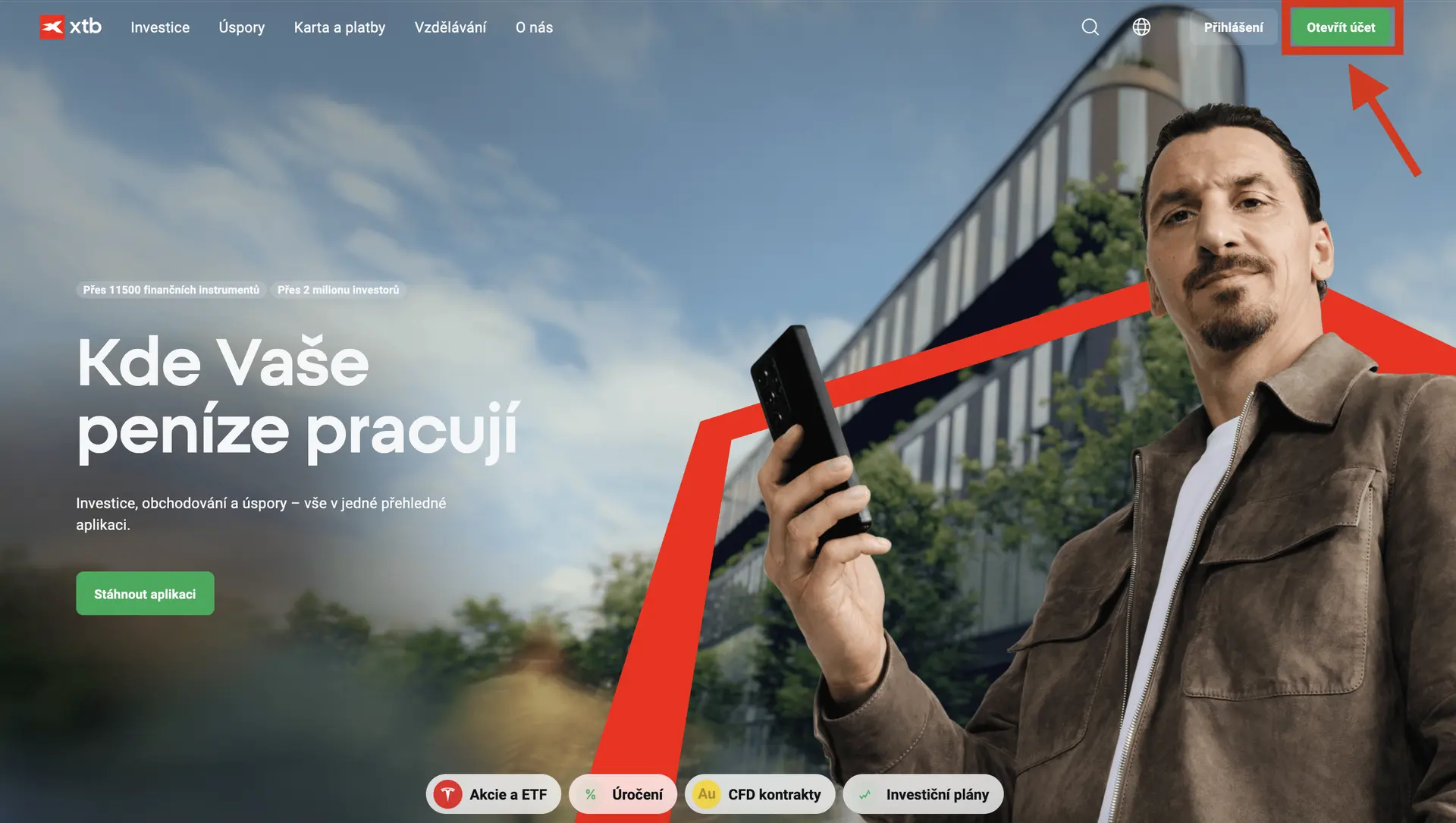 1. Navštivte web XTB. Úplně nahoře uvidíte bílé tlačítko s názvem „Otevřít účet“. Klikněte na něj.