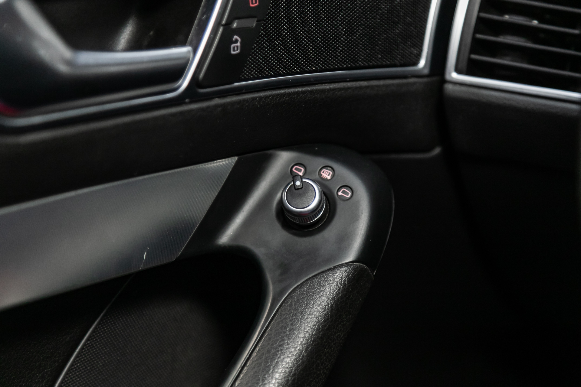 Otočný ovladač zrcátek u Audi je narozdíl od jiných značek celkem jasný: kolečko ve spodní části fotky se přepíná mezi levým a pravým zrcátkem (ikony L/R) a pozicí s vlnkami pro vyhřívání. Stačí ho otočit do polohy s vlnkami a topný drátek v obou krytech se rozjede.