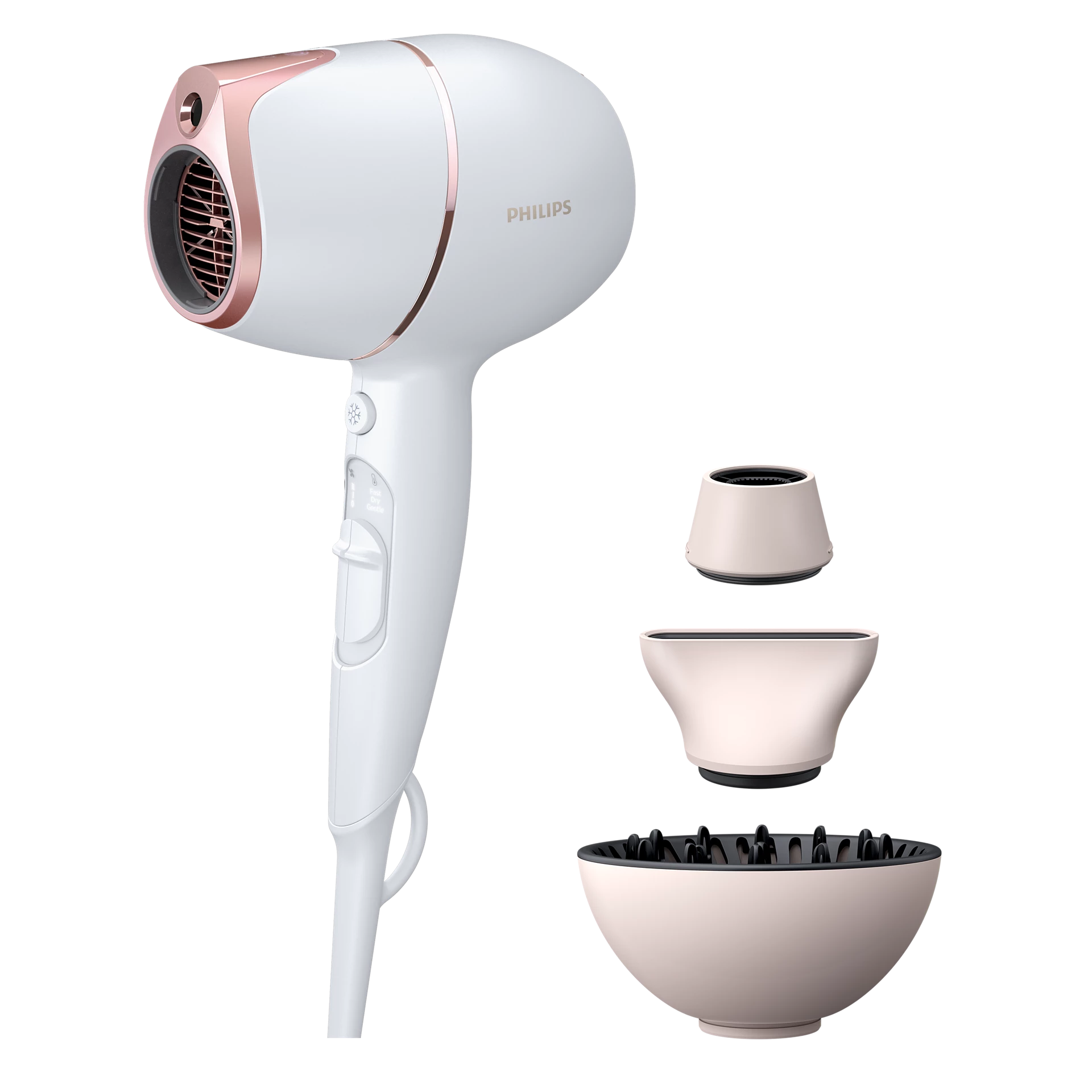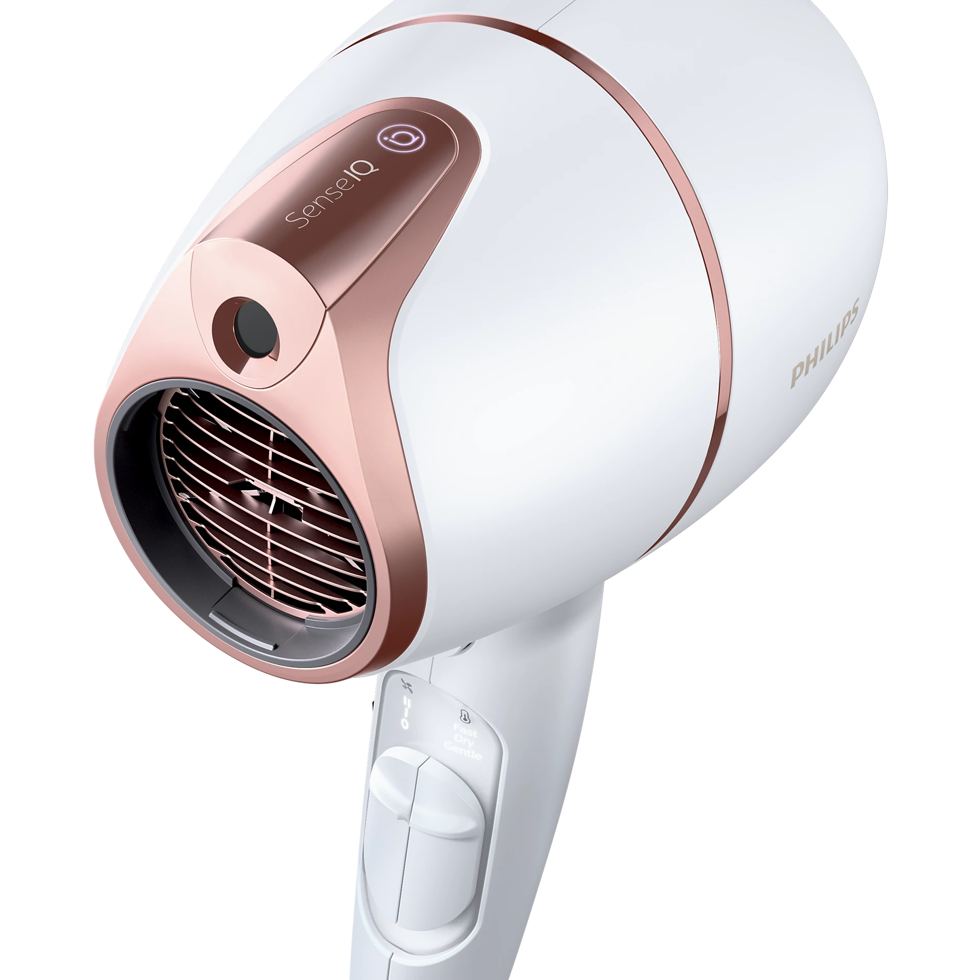 Fén Philips Series 8000 Prestige nabízí řadu vlastností, pro které si jej oblíbíte. Je to skutečně pokročilý pomocník pro styling vlasů, který drží krok s dobou. Disponuje inovativní technologií SenseIQ pro personalizované vysoušení se speciálním senzorem, díky kterému se přizpůsobuje vašim vlasům, upravuje teplotu, aby se zabránilo přehřátí, a udržuje tak přirozenou vlhkost vlasů. Dokonce přizpůsobuje také výkon vysoušení.