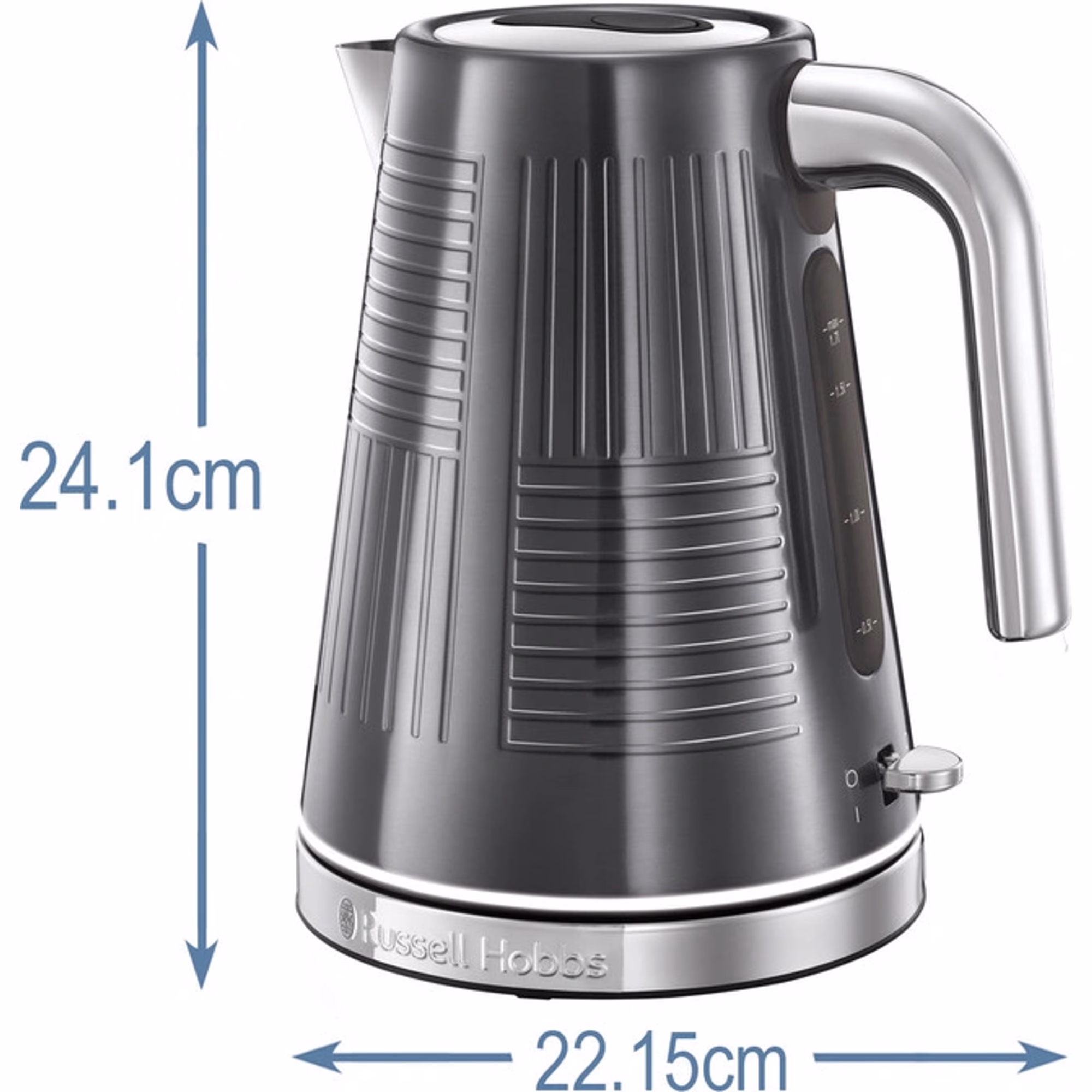 - Design a zpracování – Elegantní kovové provedení se strukturovaným designem v šedé barvě podtrhne vzhled každé kuchyně. Během varu je konvice Russell Hobbs 25240-70 efektně podsvícená a nerezový materiál jí dodává odolnost a dlouhou životnost. Kompaktní rozměry (17,0 × 21,9 × 14,0 cm) a nízká hmotnost (1,2 kg) zase zajistí snadnou manipulaci a uskladnění.