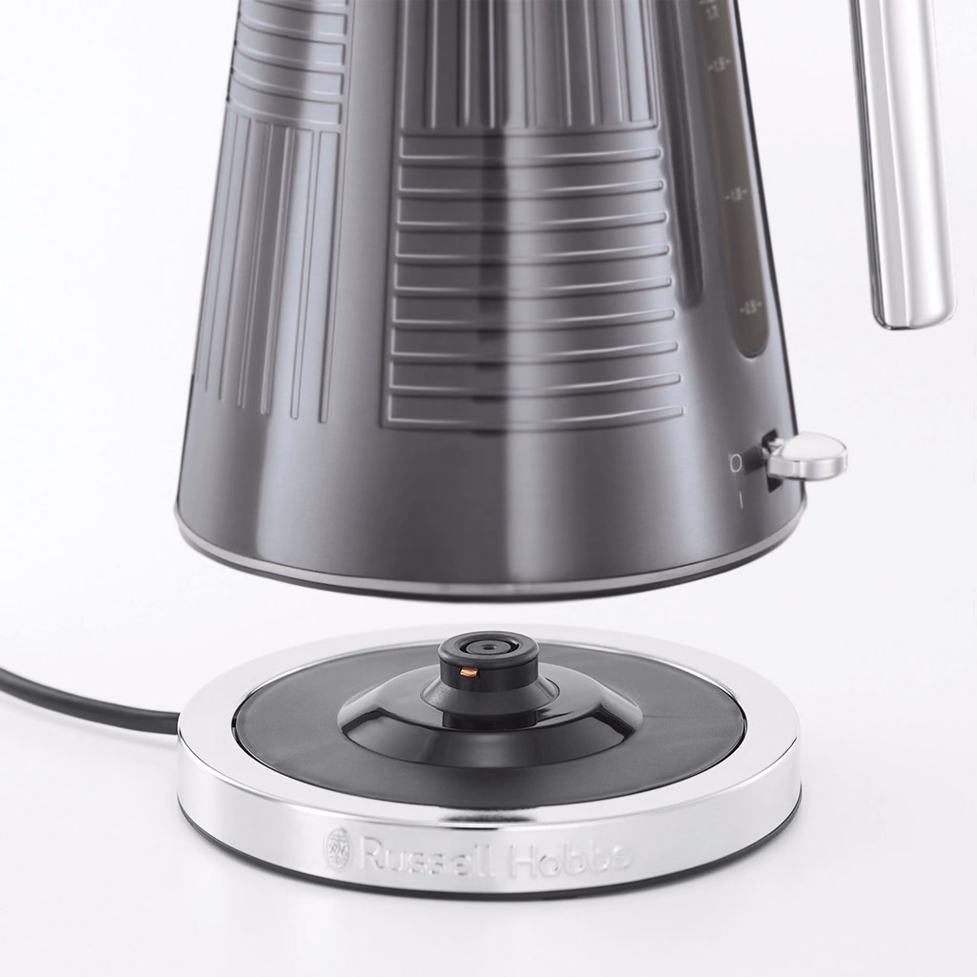 - Ovládání a uživatelský komfort – Víko konvice Russell Hobbs otevřete jednoduše stiskem jednoho tlačítka a díky průhlednému okénku s ukazatelem vždy uvidíte množství vody. 360° středový konektor zajistí snadné nasazení z jakéhokoliv úhlu a v podstavci je navíc úložný prostor, kde šikovně schováte přívodní kabel.