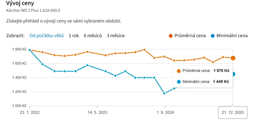 Naposledy se Kärcher WD 2 Plus prodával za průměrnou cenu 1 676 Kč