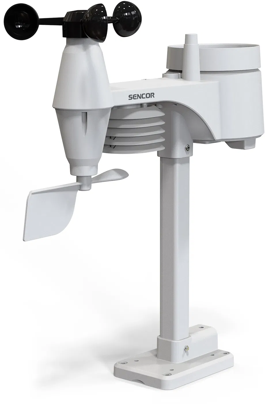 • Měření a předpověď počasí – Meteostanice Sencor SWS 9300 měří hned několik metrik – vnitřní i venkovní teplotu a vlhkost, barometrický tlak a jeho vývoj, rychlost a směr větru a úhrn dešťových srážek. Nechybí ani index počasí jako pocitová teplota, chlad větru nebo rosný a předpověď počasí pomocí ikon (slunečno, oblačno, déšť či sníh).