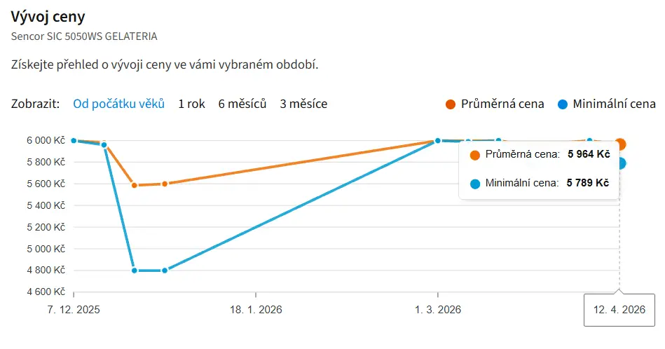Foto: Oficiální materiály distributoraPoslední známá průměrná cena zmrzlinovače Sencor Gelateria byla 5 964 Kč