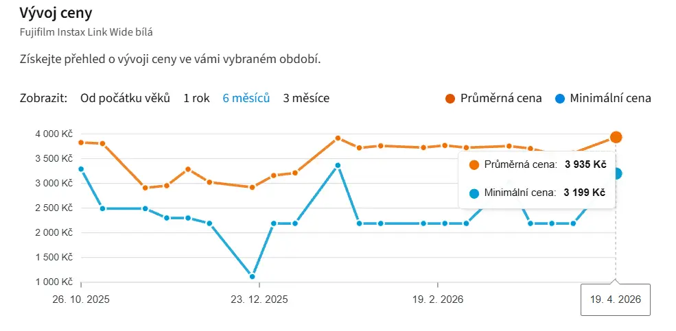 Foto: Oficiální materiály distributoraPoslední průměrná cena tiskárny Fujifilm Instax Link Wide činila 3 935 Kč