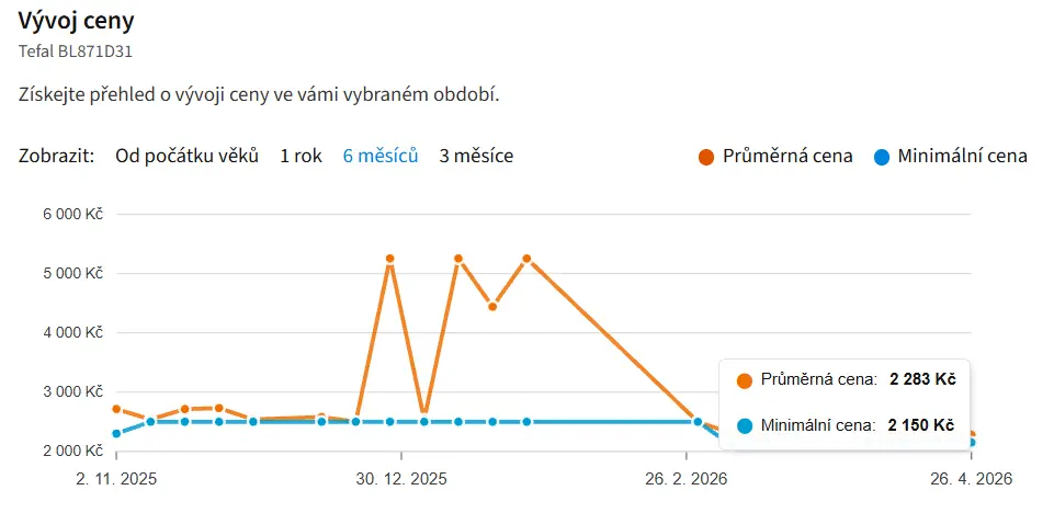 Foto: Oficiální materiály distributoraNaposledy se průměrná cena stolního mixéru Tefal Perfectmix+ BL871D31 pohyovala okolo 2 283 Kč