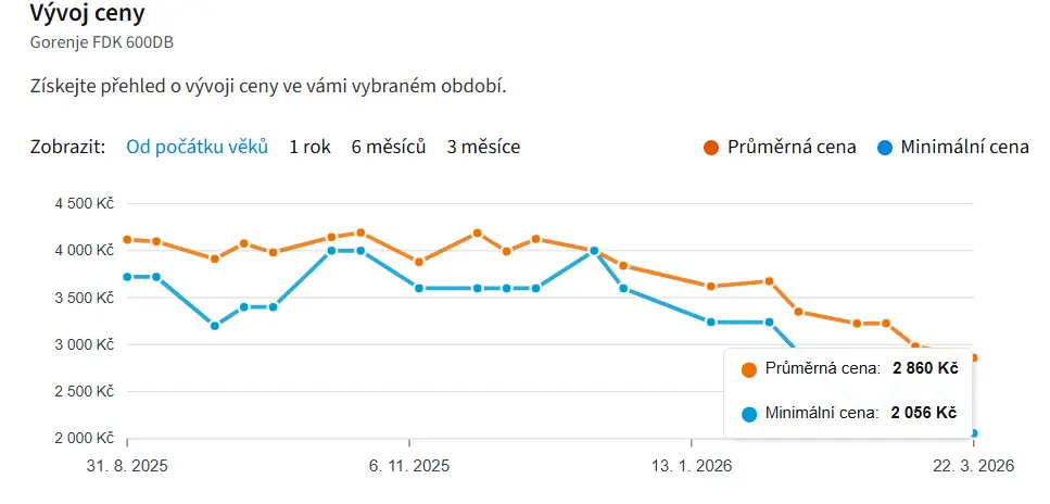 Foto: Oficiální materiály distributoraNaposledy se sušička Gorenje FDK600DB prodávala za průměrnou cenu 2 860 Kč